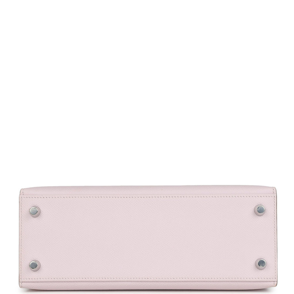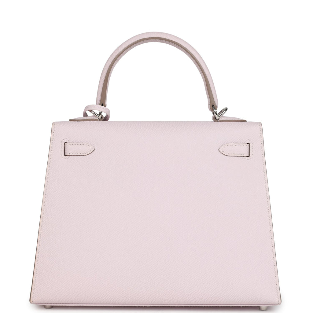 Hermes Kelly Sellier 25 Mauve Pale Epsom Palladium Hardware Shop for an authentic Hermes Kelly Sellier 25 in Mauve Pale Epsom leather with Palladium hardware in new and never worn condition at Madison Avenue Couture.