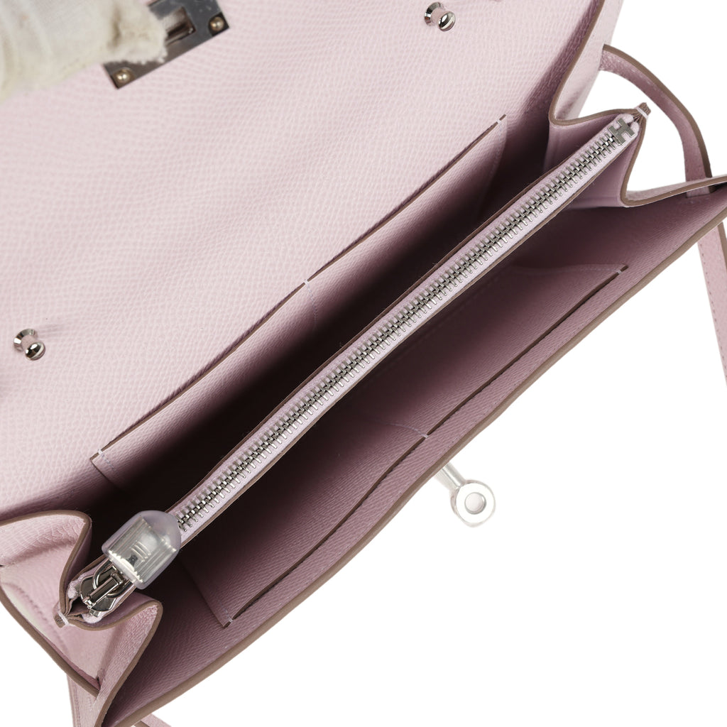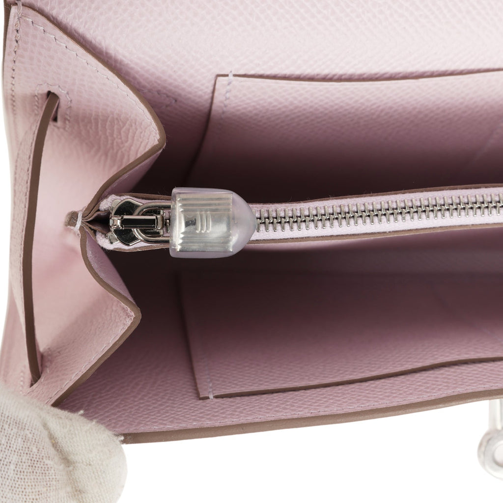 Hermes Kelly Wallet To Go Mauve Pale Epsom Palladium Hardware Shop for an authentic Hermes Kelly Wallet To Go in Mauve Pale epsom leather with palladium hardware in new and never worn condition at Madison Avenue Couture.