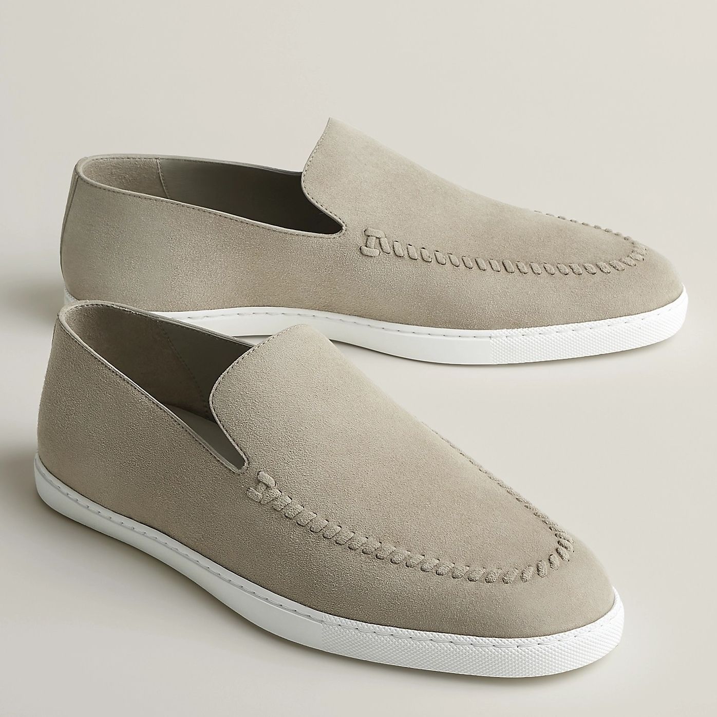 Hermes Men's Julian Loafers in Grey Suede Leather