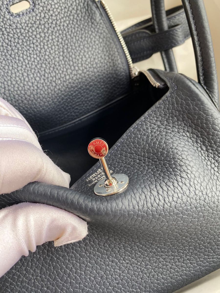 Hermes Mini Lindy Handmade Bag In Blue Nuit HHL19clbnClemence Leather