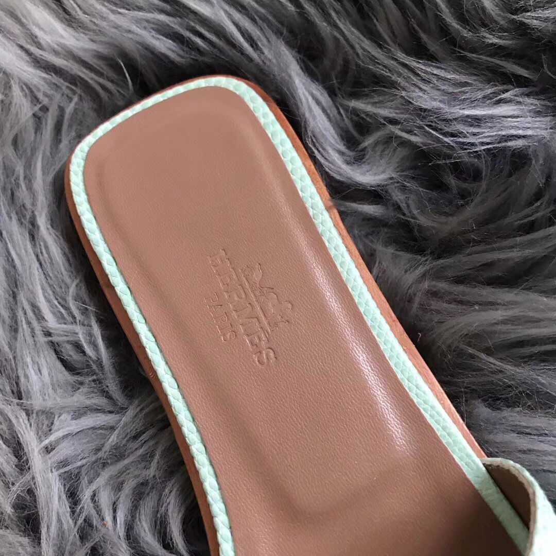 Hermes Oran Sandals In Aqua Lizard Leather