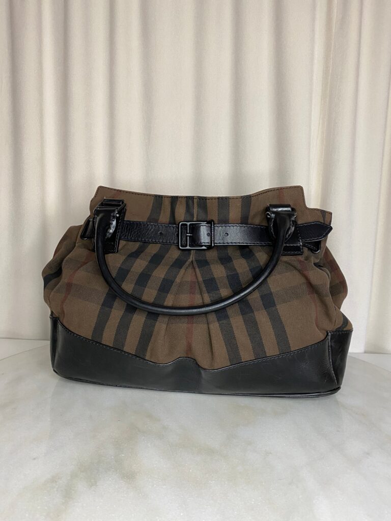 – Surface: Hairline scratches and tarnishing on the hardware, slight creasing on the inner leather