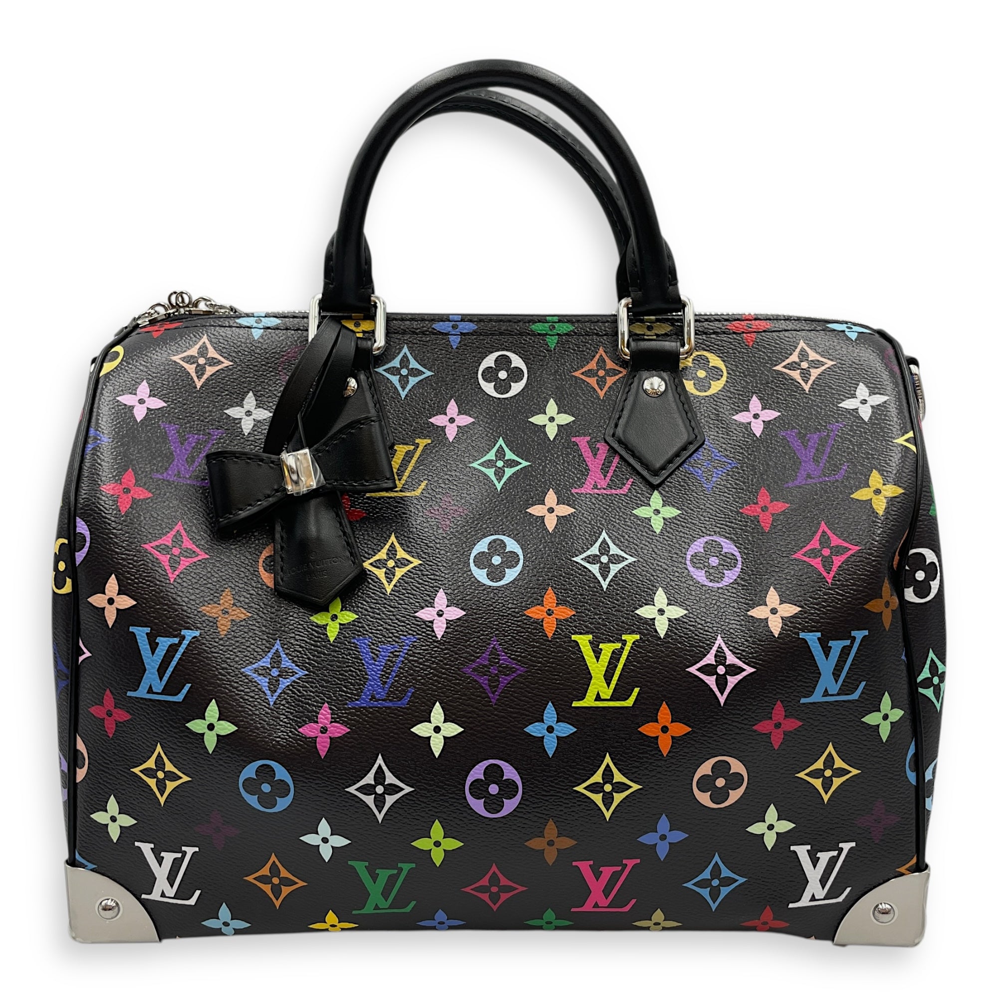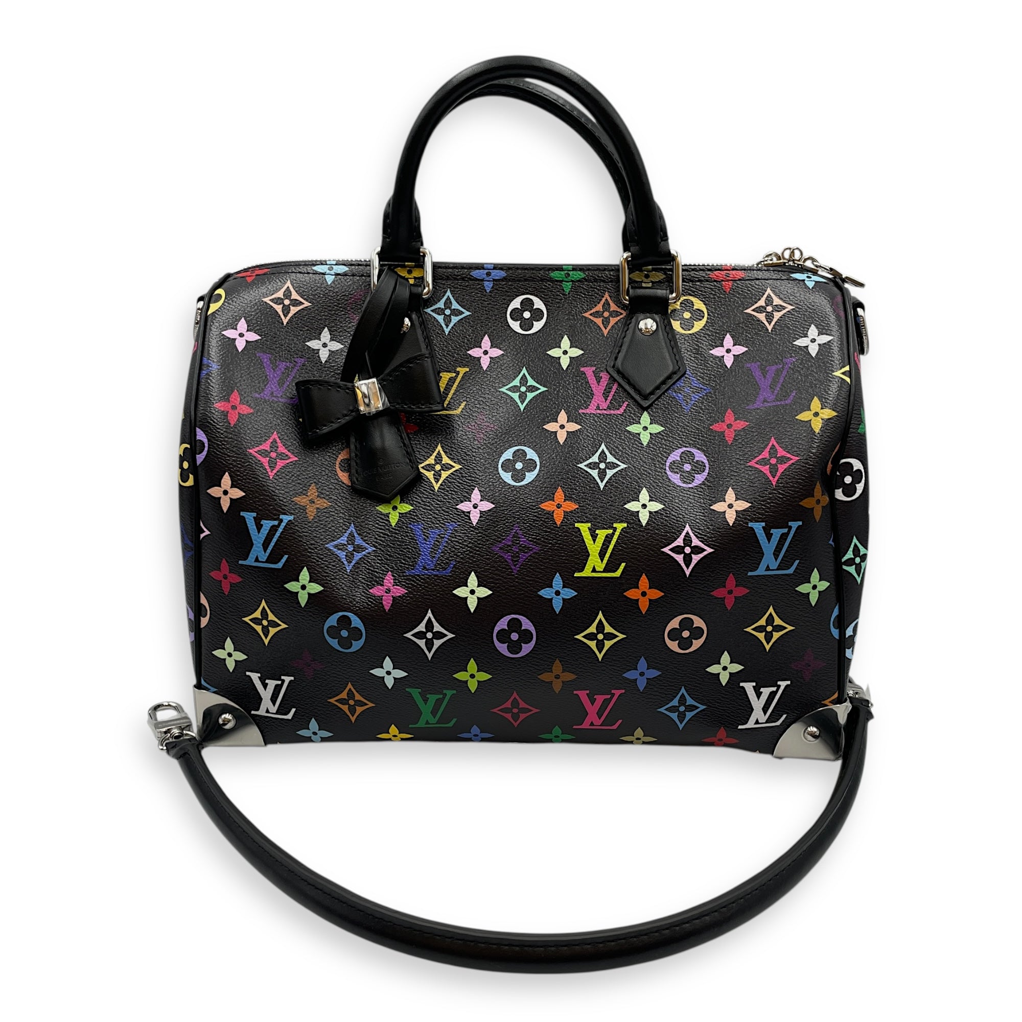 LV x TM Speedy 30cm Black Shoulder Bag in Canvas, Silver hardware