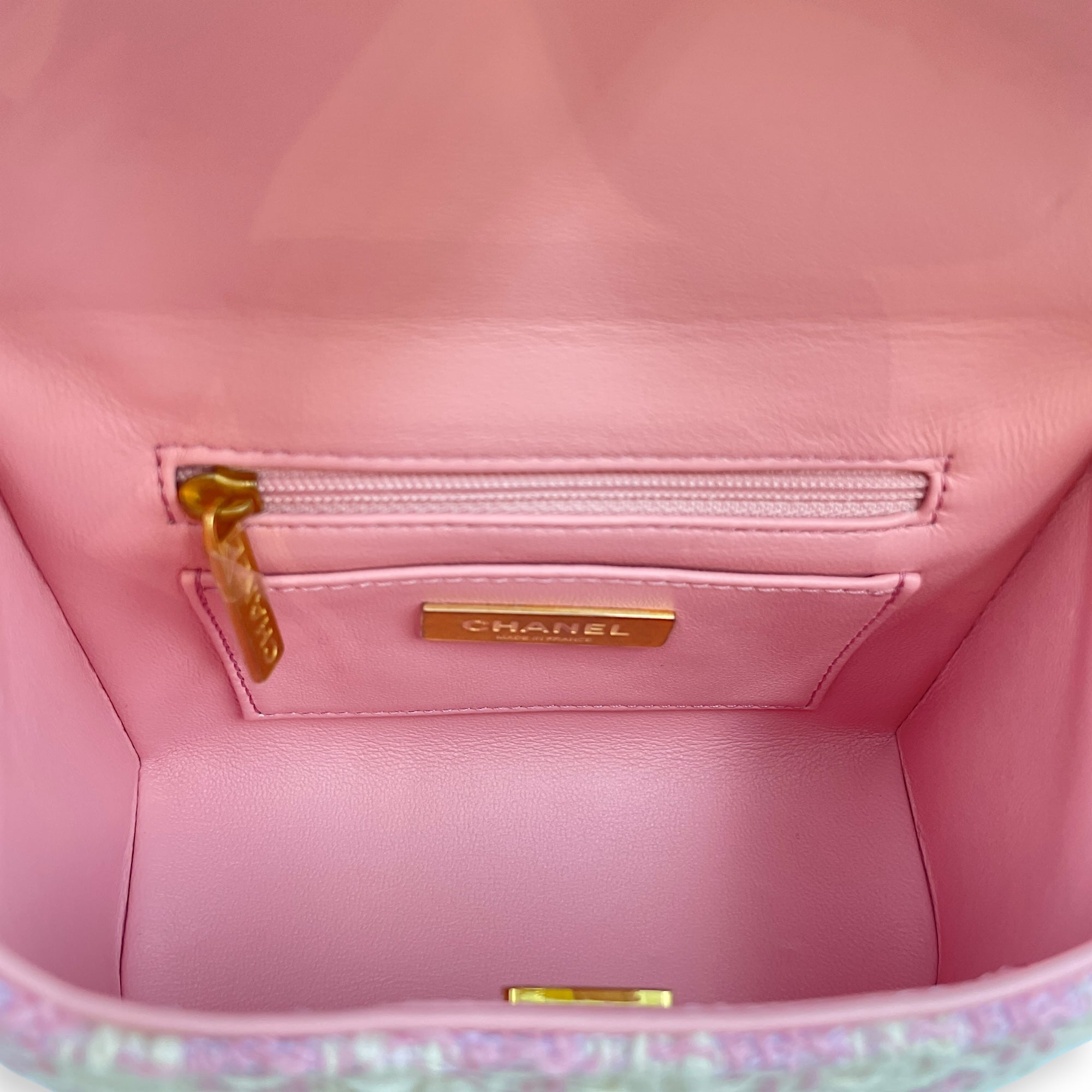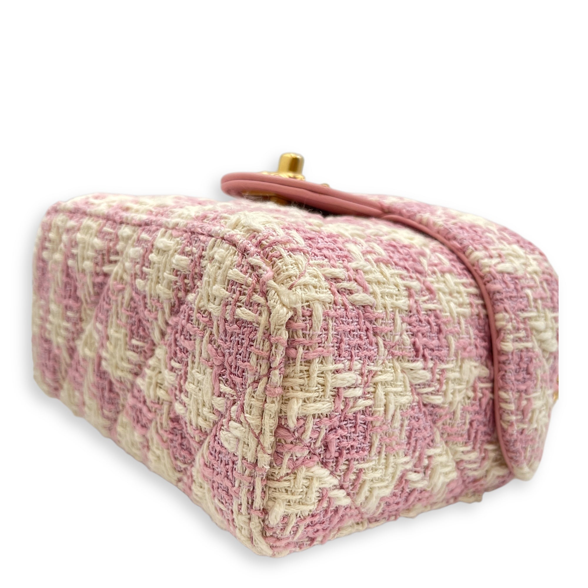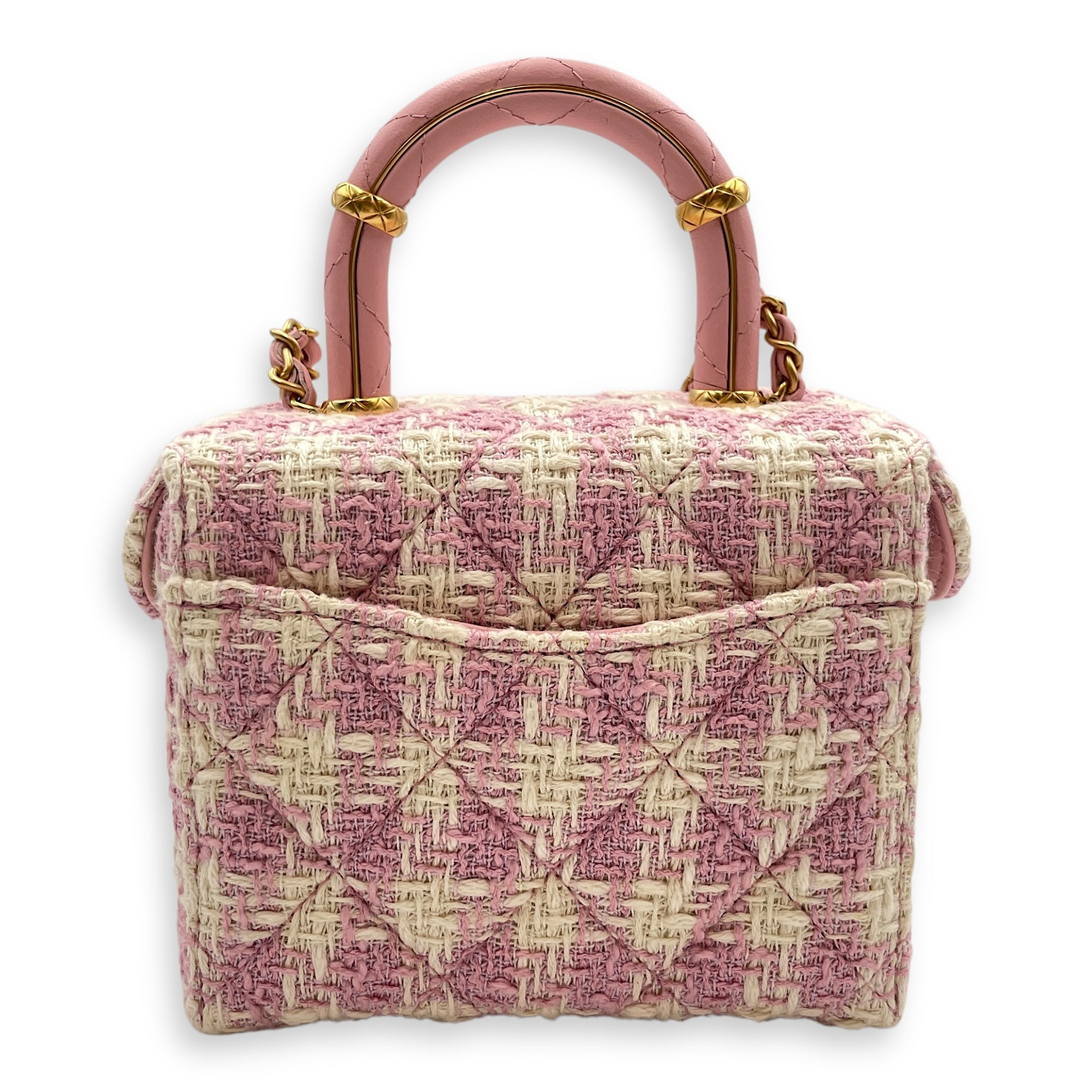 Be the first to review “Matelasse Small Pink Vanity Case in Tweed, Gold hardware”