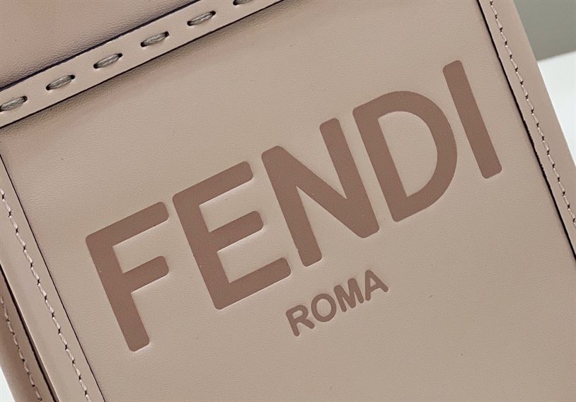 Mini Sunshine Shopper Bag Pale pink leather has FENDI ROMA lettering in python-look printed elaphe.