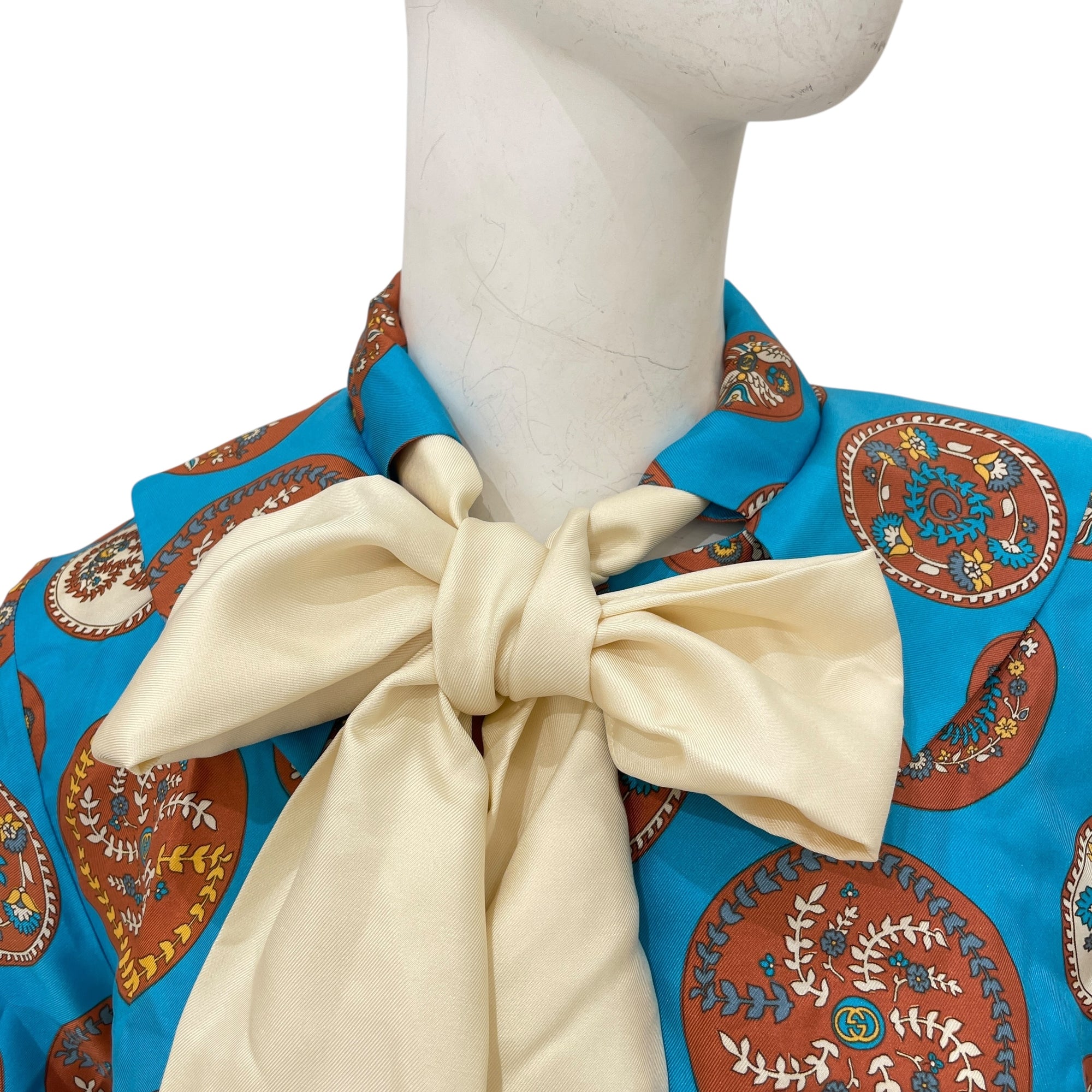 Be the first to review “Paisley Print Scarf Blouse 36 Blue Ready-To-Wear in Silk”