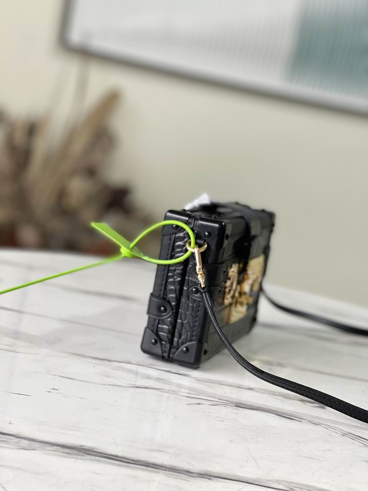Petite Malle Black Brilliant Alligator leather – a “little trunk” travels elegantly from day into night. There are many different ways you could rock the classic, ultra-ladylike look. The iconic fittings of historic House trunks to create the Petite Malle handbag. This bag will surely fetch you a lot of compliments for its uber-classy appeal and rich look.