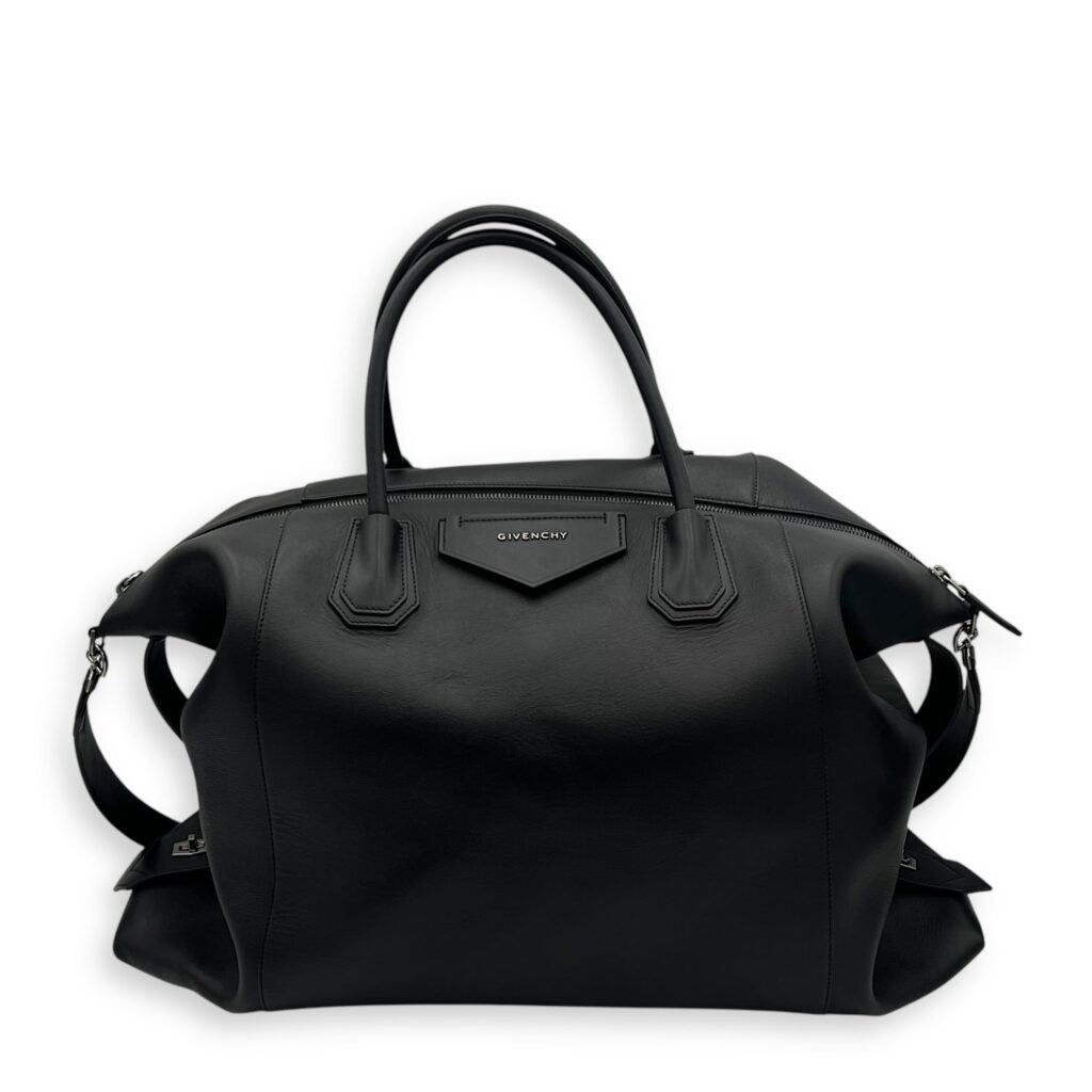 It features natural leather accents, especially on the sides, reminiscent of the iconic zip pulls of the House.