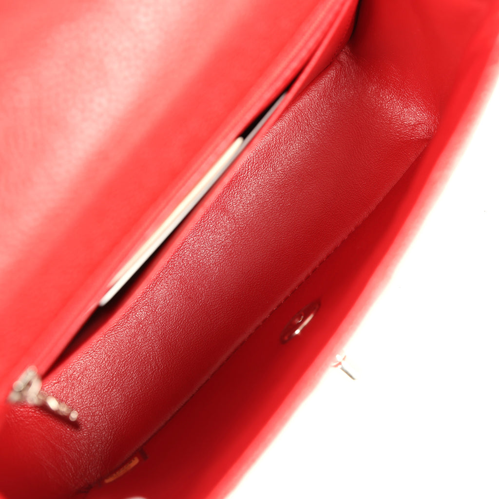 Pre-owned Chanel Mini Rectangular Flap Red Caviar Silver Hardware Shop for an authentic pre-owned Chanel Mini Rectangular Flap in Red caviar leather with silver hardware in excellent to mint condition at Madison Avenue Couture.