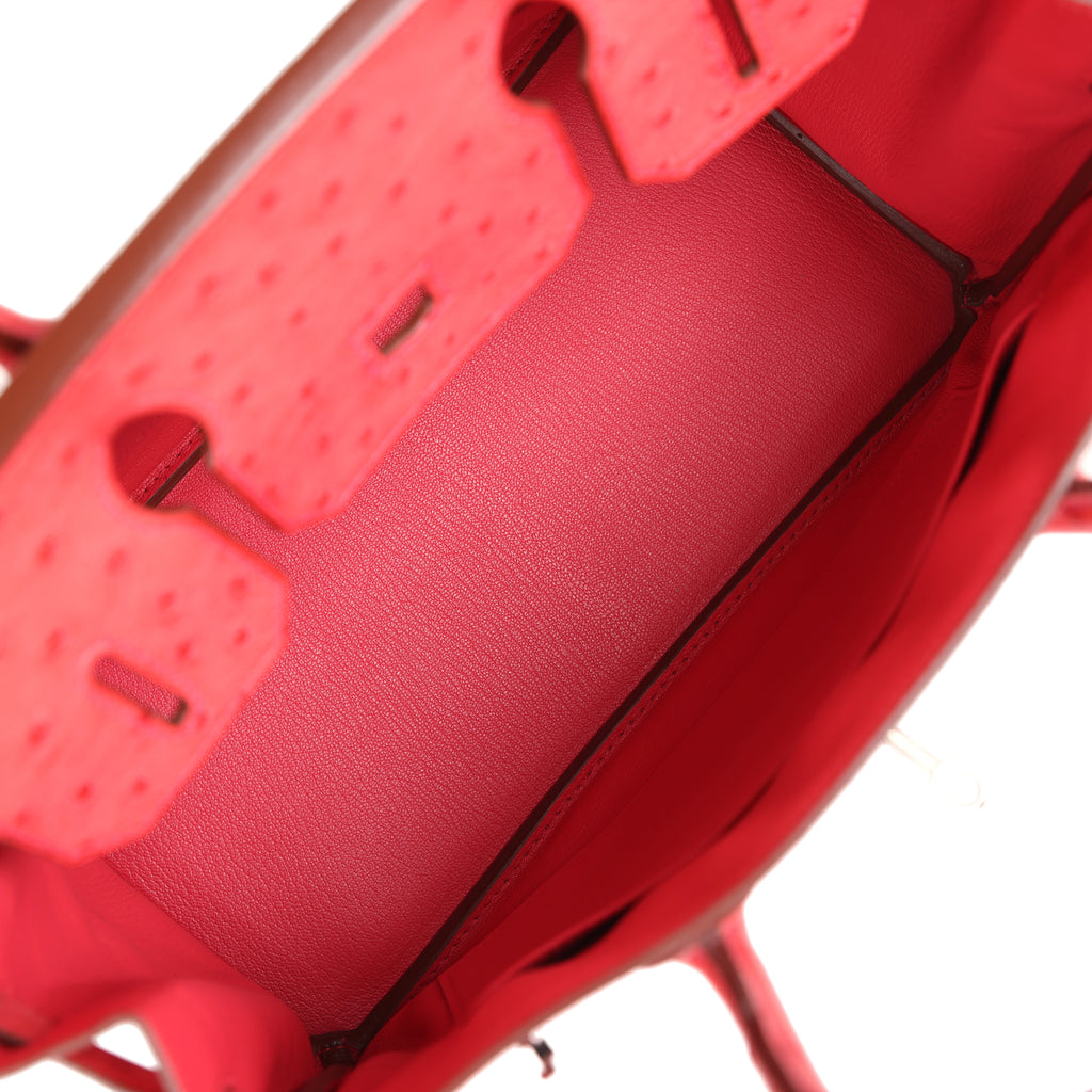 Pre-owned Hermes Birkin 30 Bougainvillea Ostrich Palladium Hardware Shop for an authentic pre-owned Hermes Birkin 30 in Bougainvillea ostrich leather with palladium hardware in mint condition at Madison Avenue Couture.