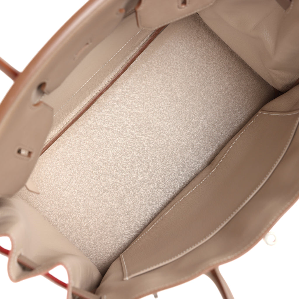 Pre-owned Hermes Birkin 30 Cascade Rose Jaipur, Etoupe and Argile Swift and Clemence Brushed Palladium Hardware Shop for an authentic pre-owned Hermes Birkin Cascade 30 in Rose Jaipur, Etoupe and Argile clemence and swift leather with brushed palladium hardware in mint condition at Madison Avenue Couture.