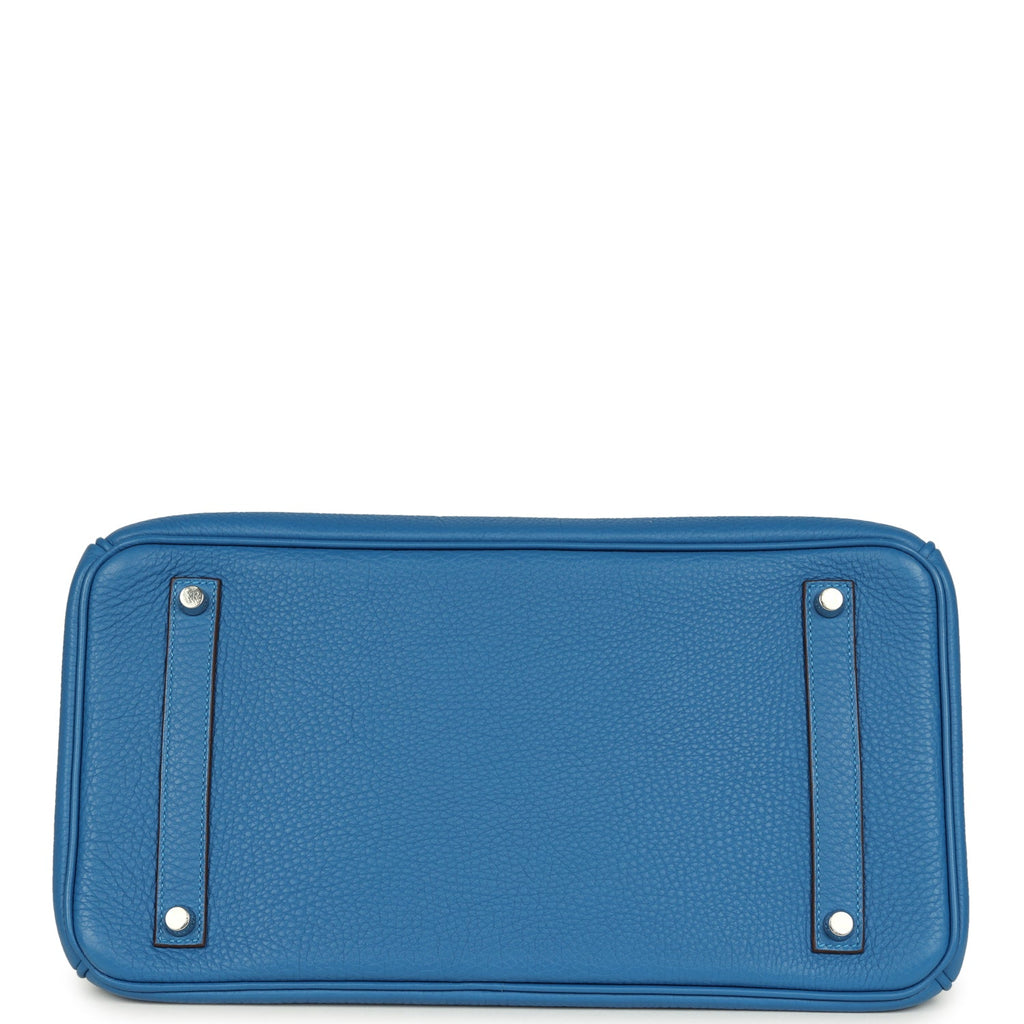 Pre-owned Hermes Birkin 35 Bleu Mykonos Togo Palladium Hardware Shop for an authentic pre-owned Hermes Birkin 35 Bleu Mykonos togo leather with palladium hardware in excellent condition at Madison Avenue Couture.