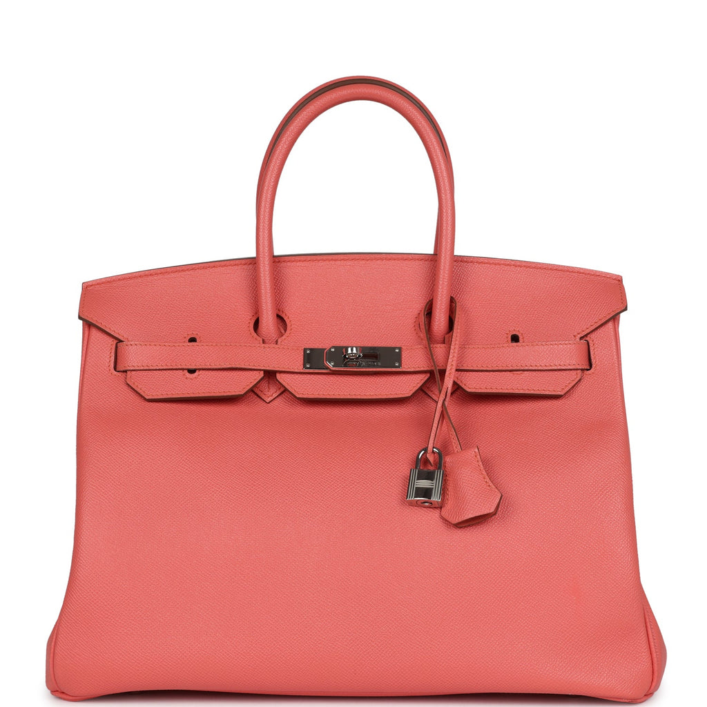 Pre-owned Hermes Birkin 35 Flamingo Epsom Palladium Hardware Shop for an authentic pre-owned Hermes Birkin 35 in Flamingo epsom leather with palladium hardware in excellent condition at Madison Avenue Couture.