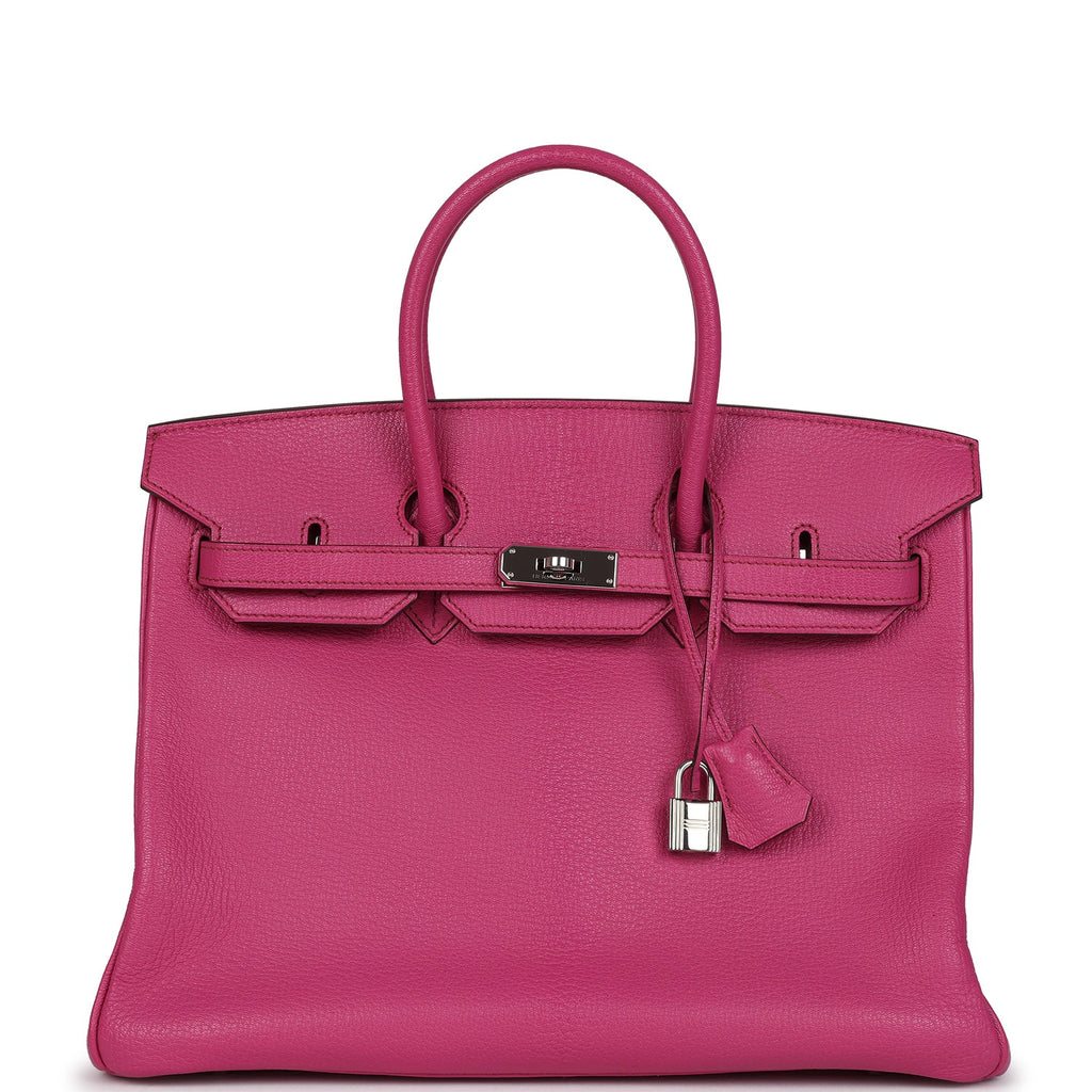 Pre-owned Hermes Birkin 35 Rose Shocking Chevre Mysore Palladium Hardware Shop for an authentic pre-owned Hermes Birkin 35 in Rose Shocking chevre mysore leather with palladium hardware in excellent condition at Madison Avenue Couture.