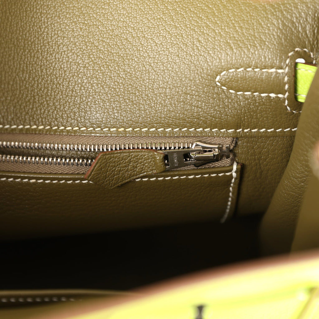 Pre-owned Hermes Candy Birkin 25 Kiwi Candy Epsom Palladium Hardware Shop for an authentic pre-owned Hermes Candy Birkin 25 in Kiwi verso epsom leather with palladium hardware in mint condition at Madison Avenue Couture.