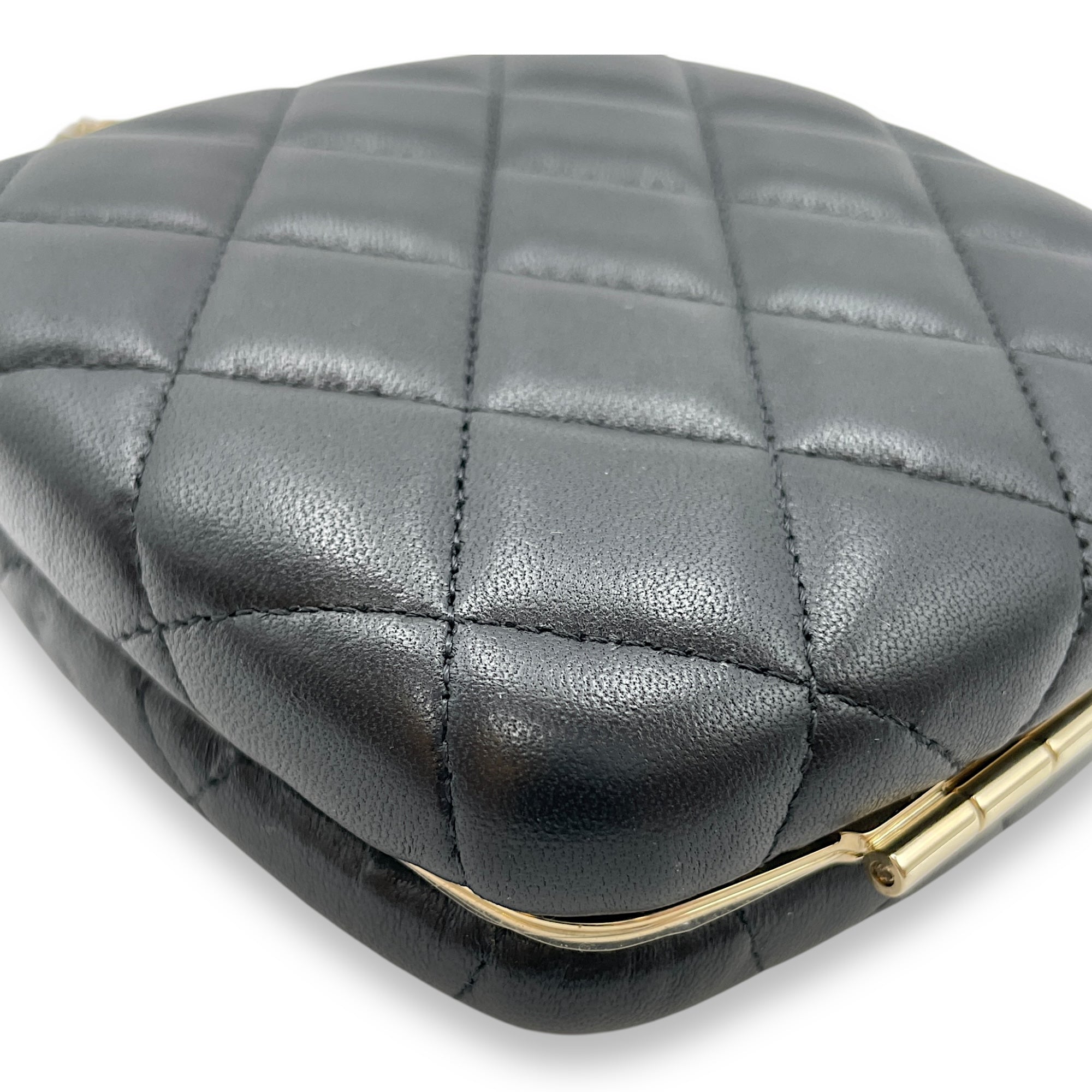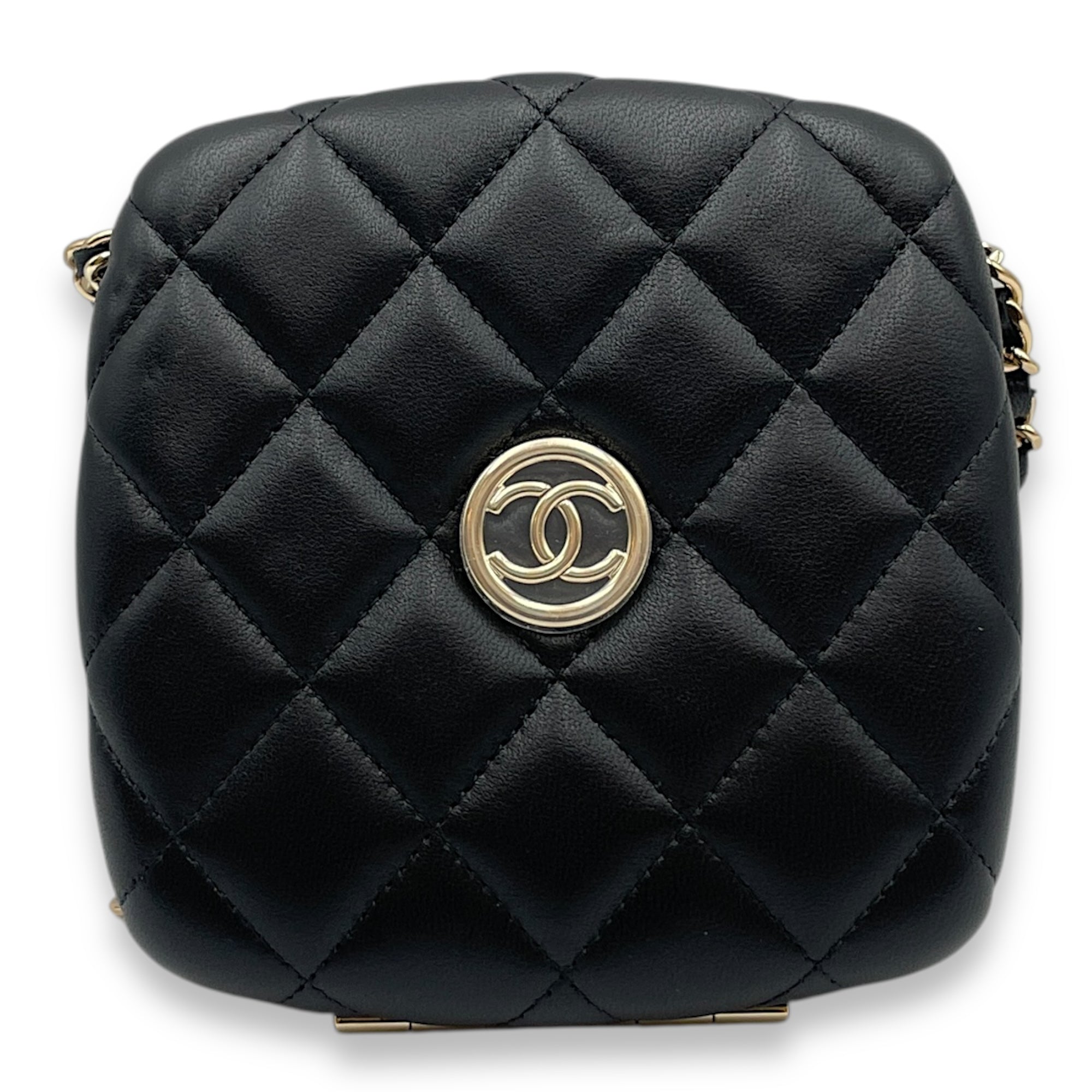 Quilted Compact Black Vanity Bag in Lambskin, Gold hardware