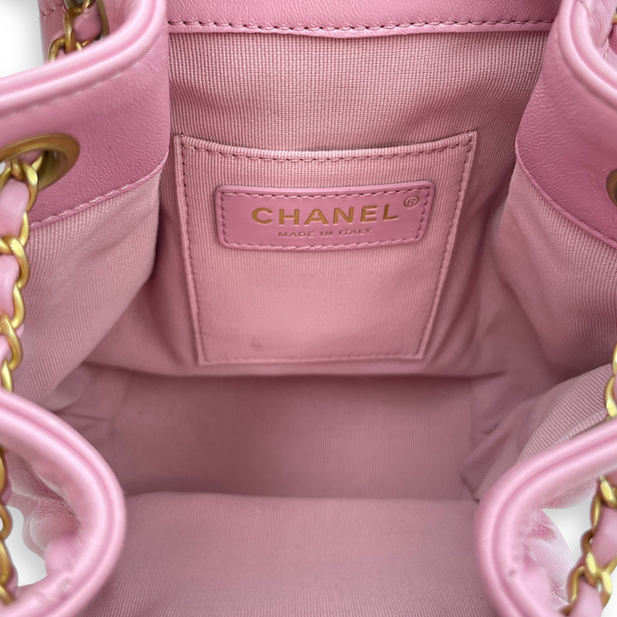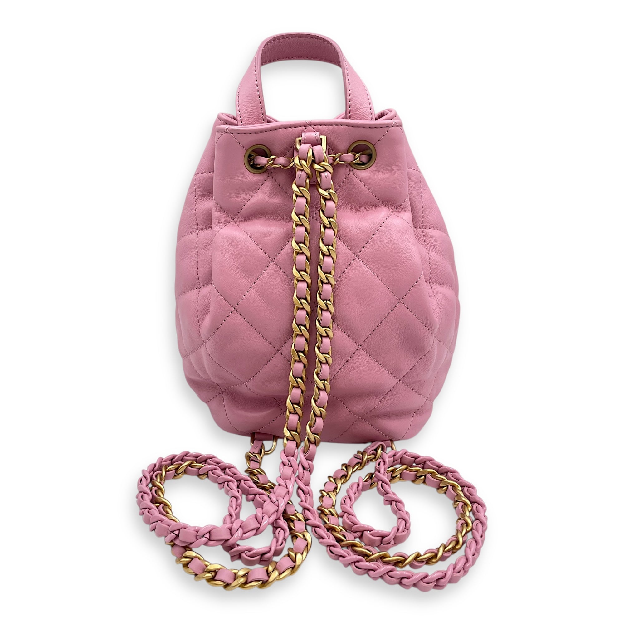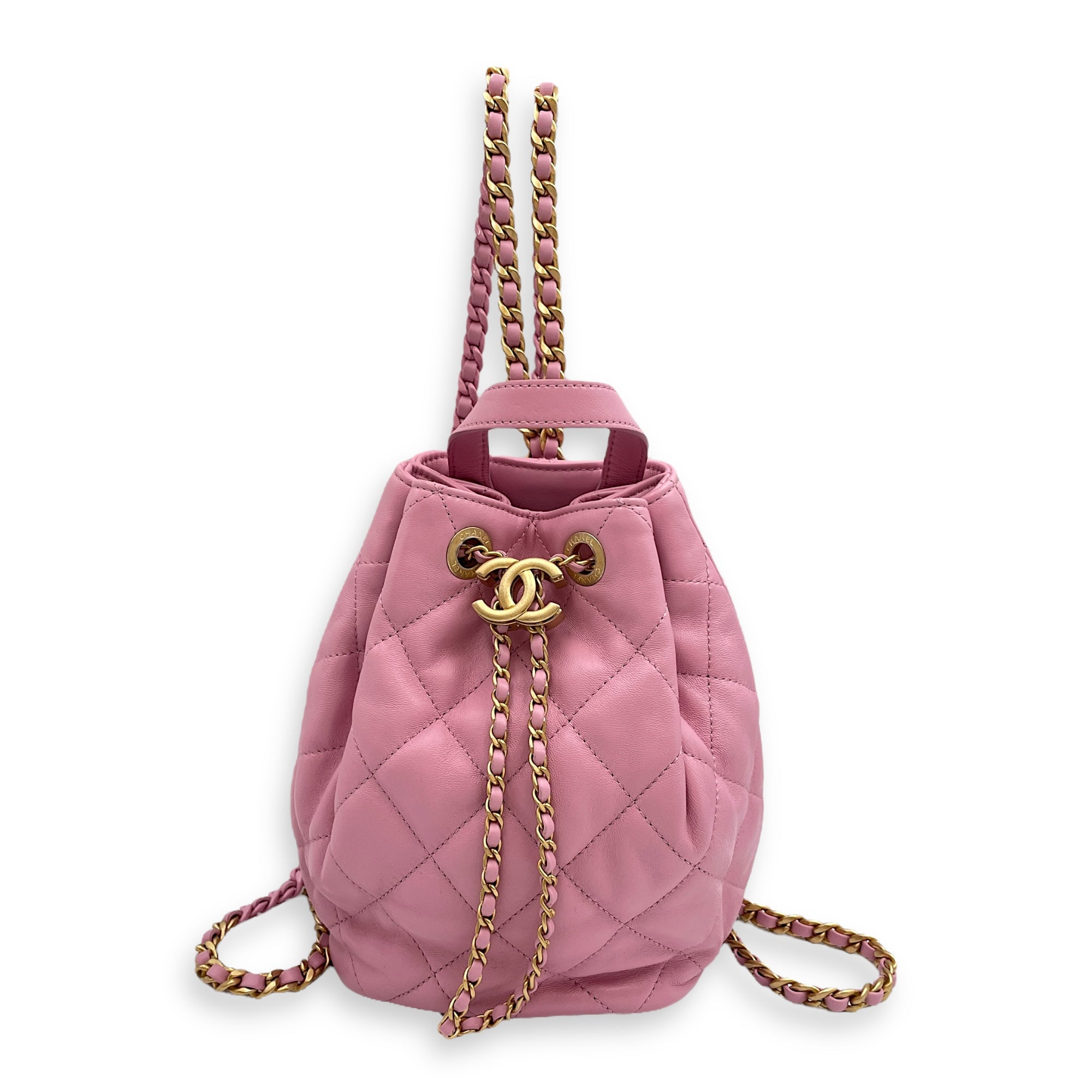 Be the first to review “Quilted Drawstring Pink Backpack in Lambskin, Gold hardware”