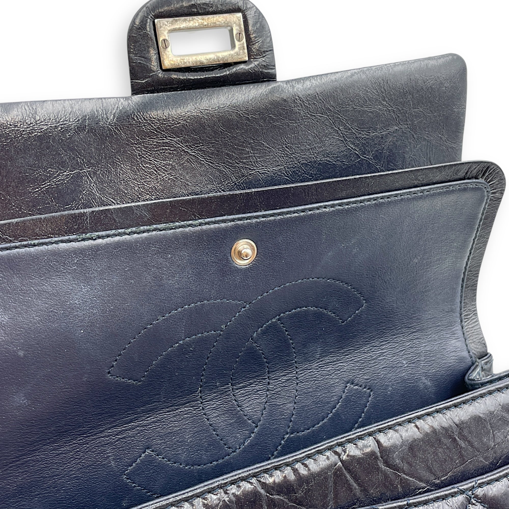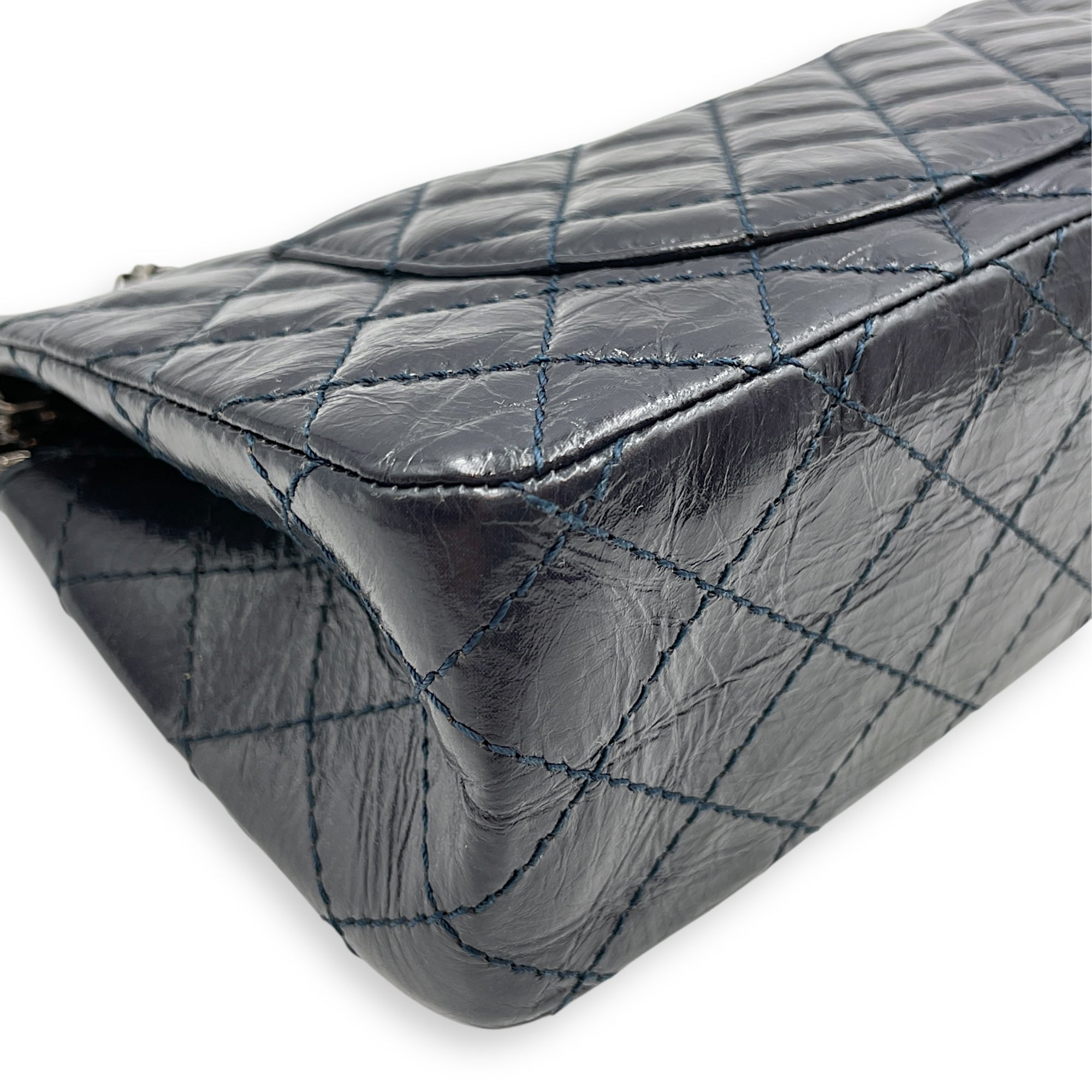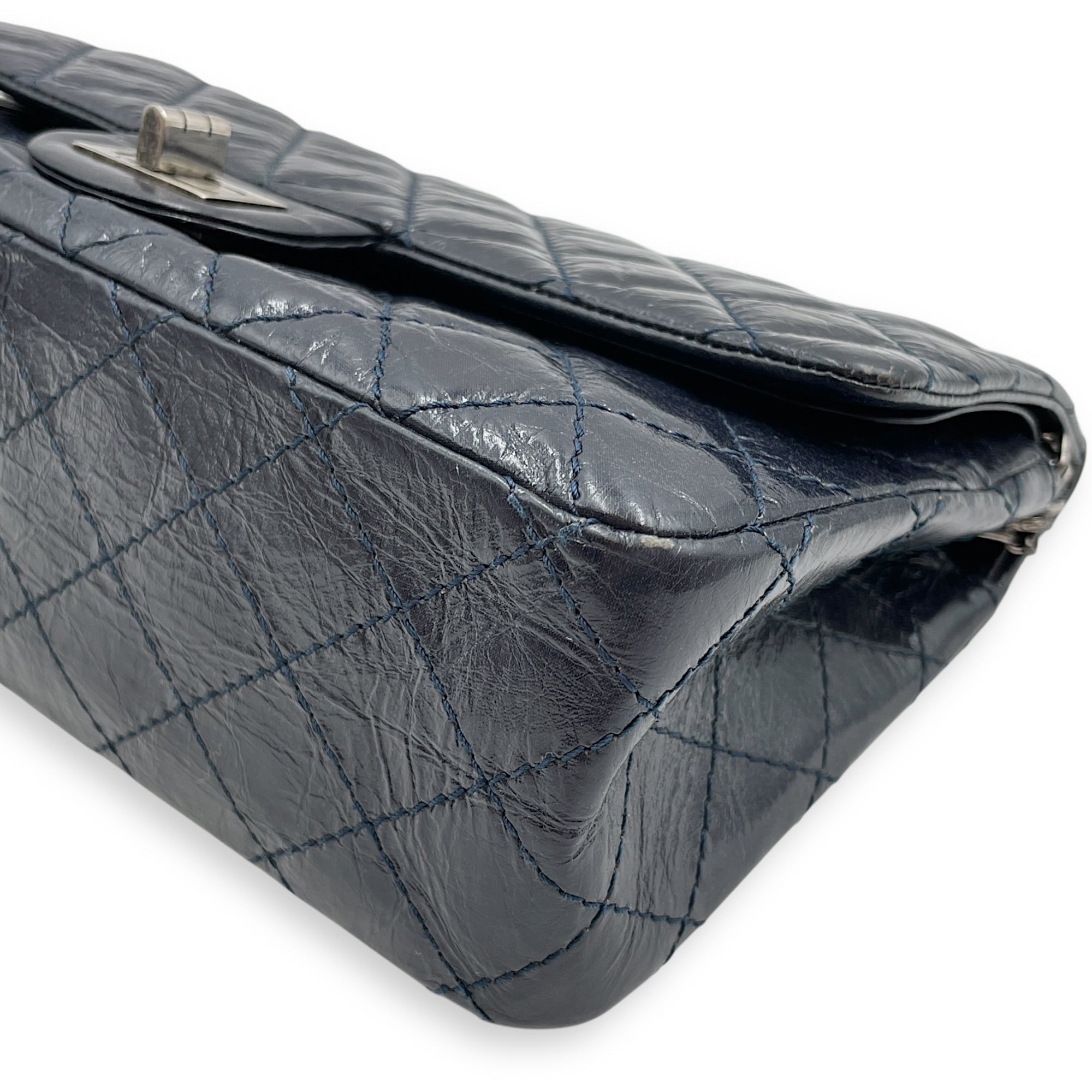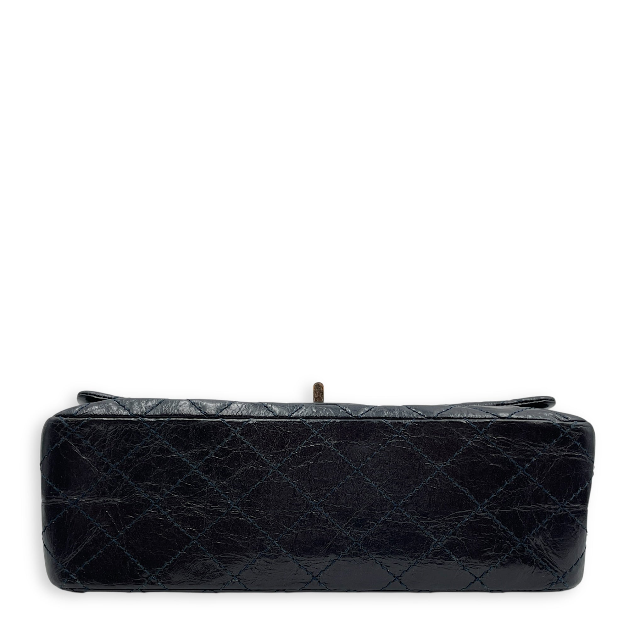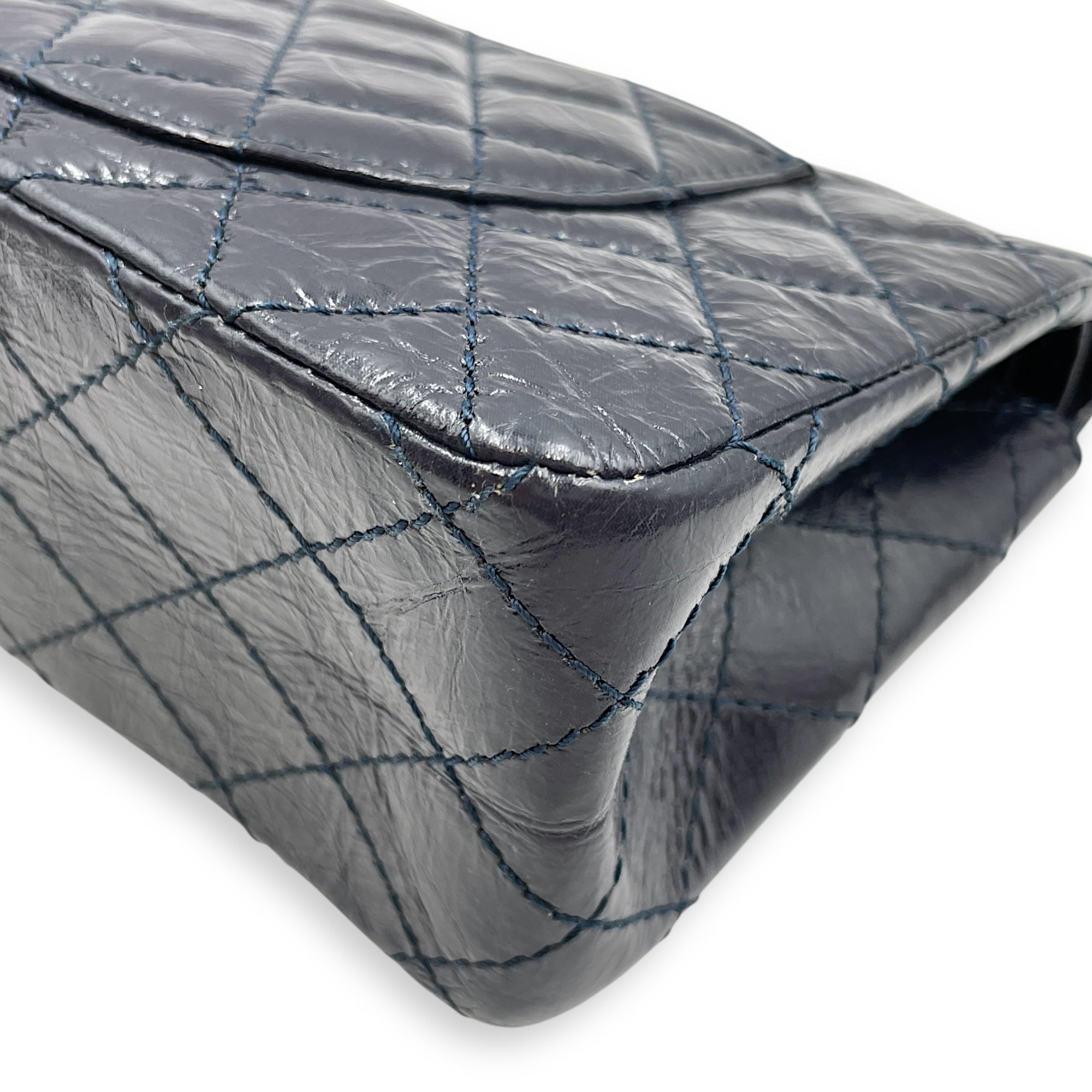 Reissue Blue Double Flap Bag in Distressed Leather, Ruthenium hardware