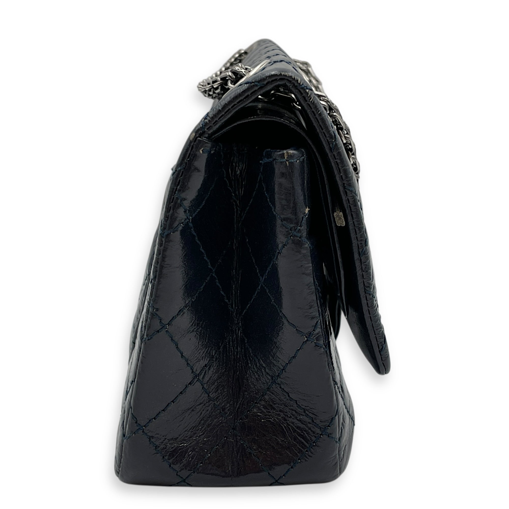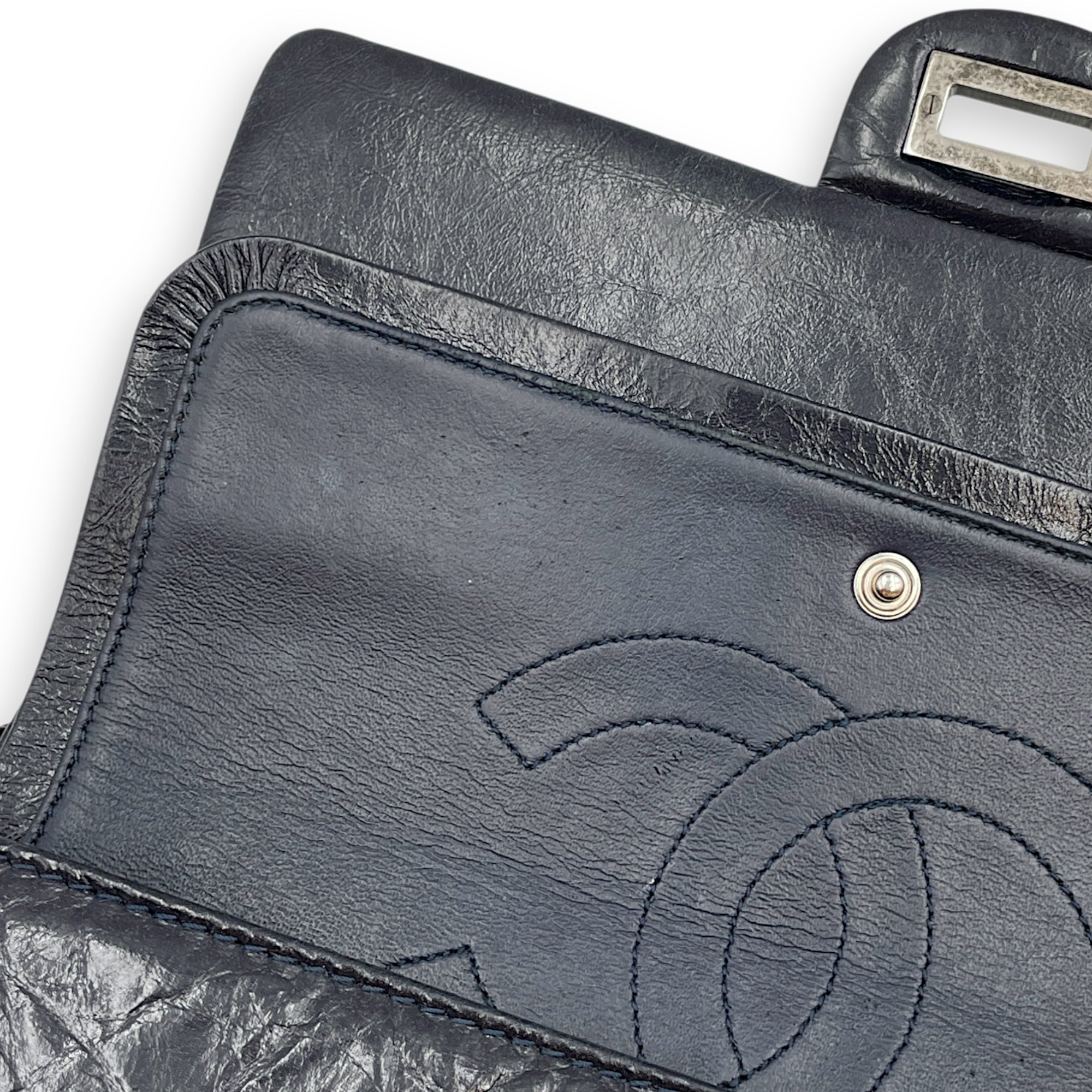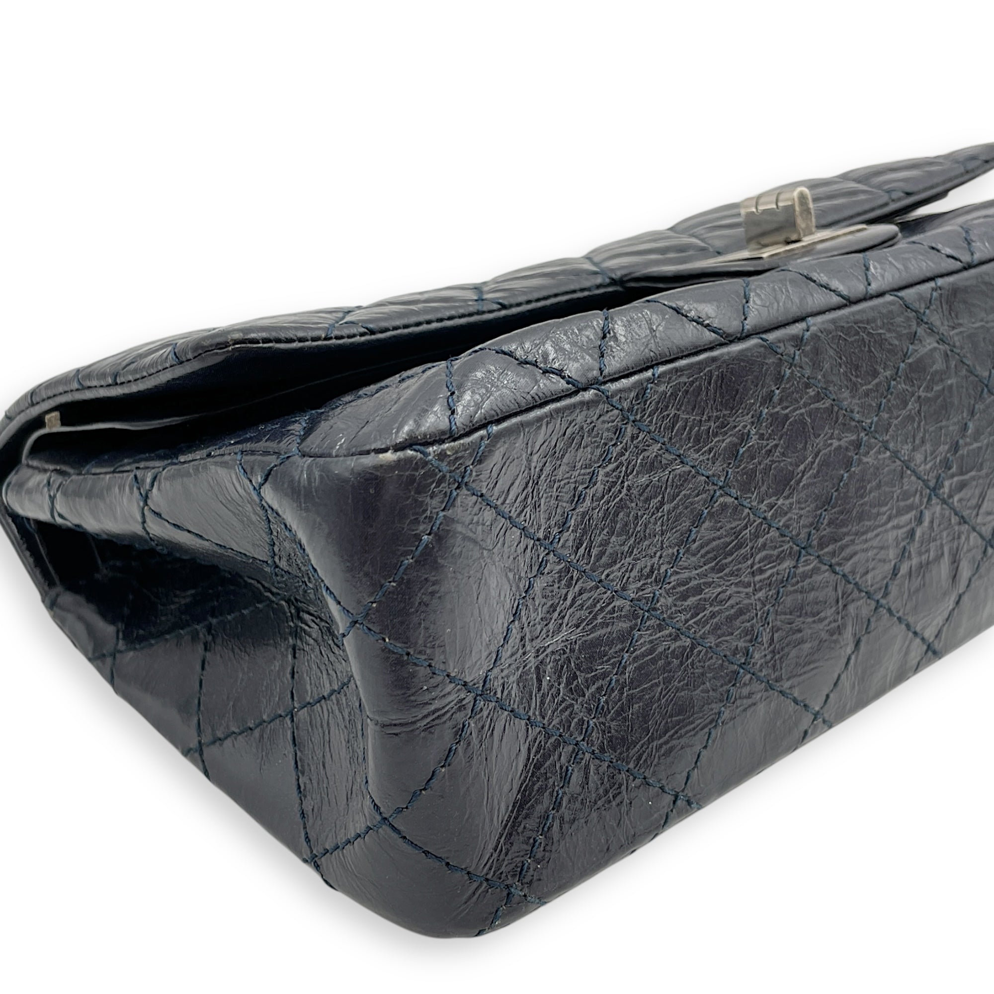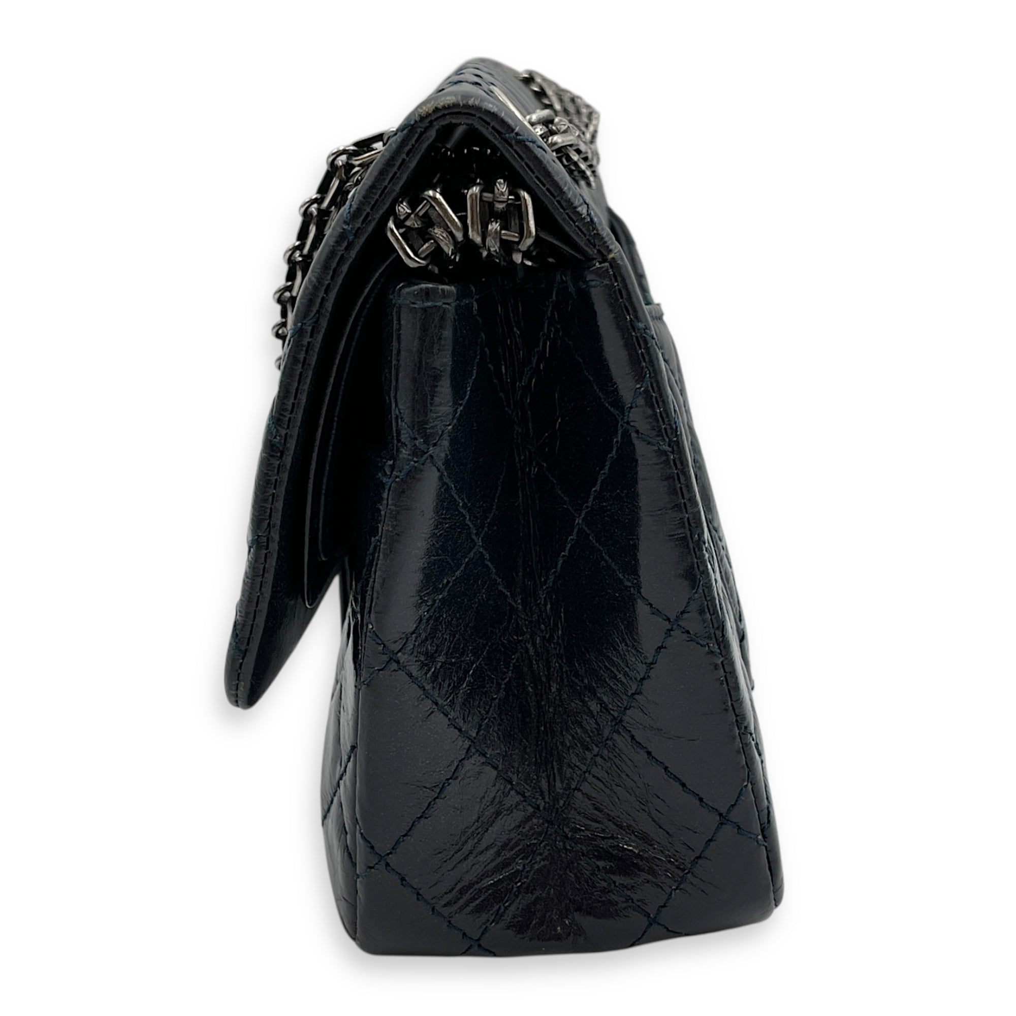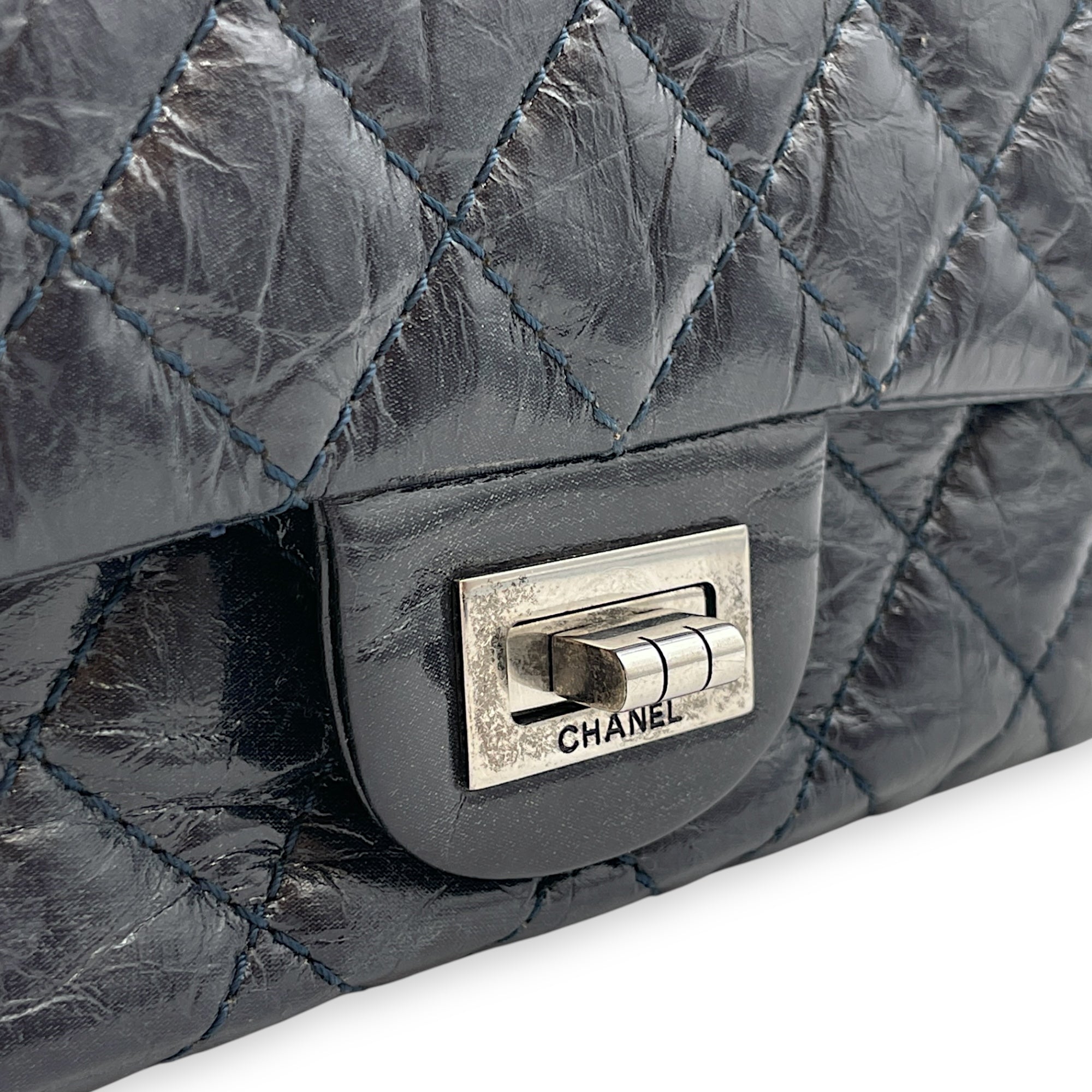 Reissue Blue Double Flap Bag in Distressed Leather, Ruthenium hardware