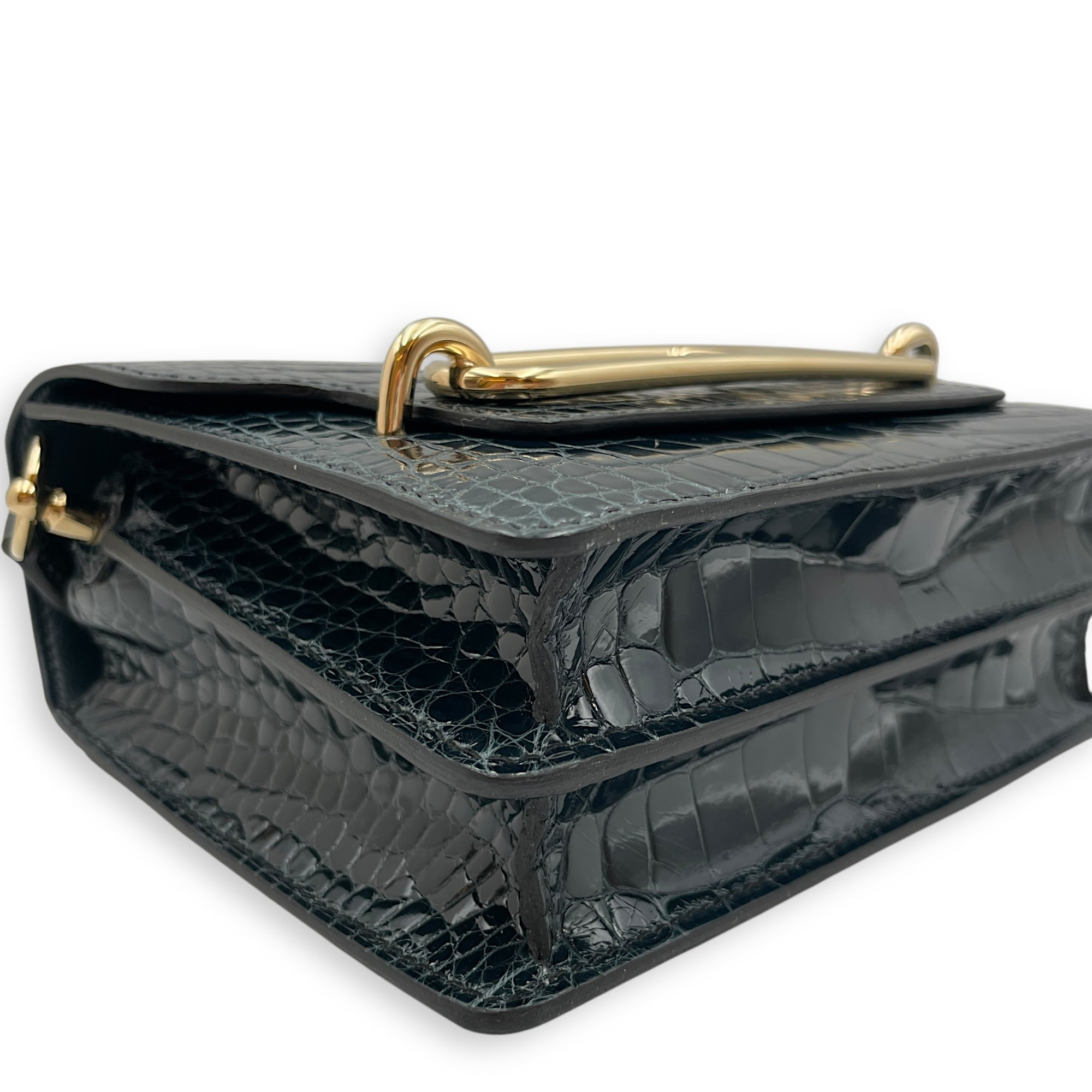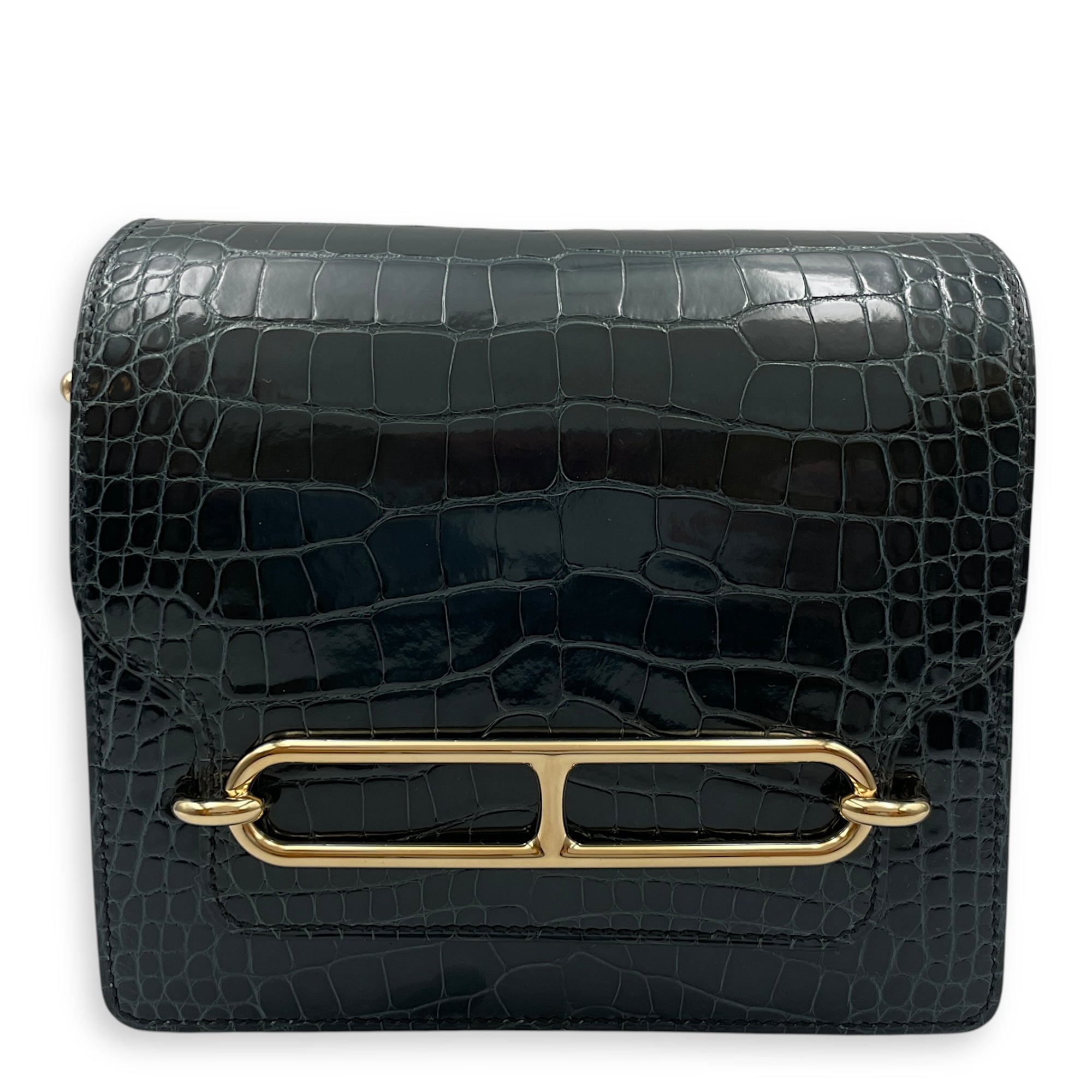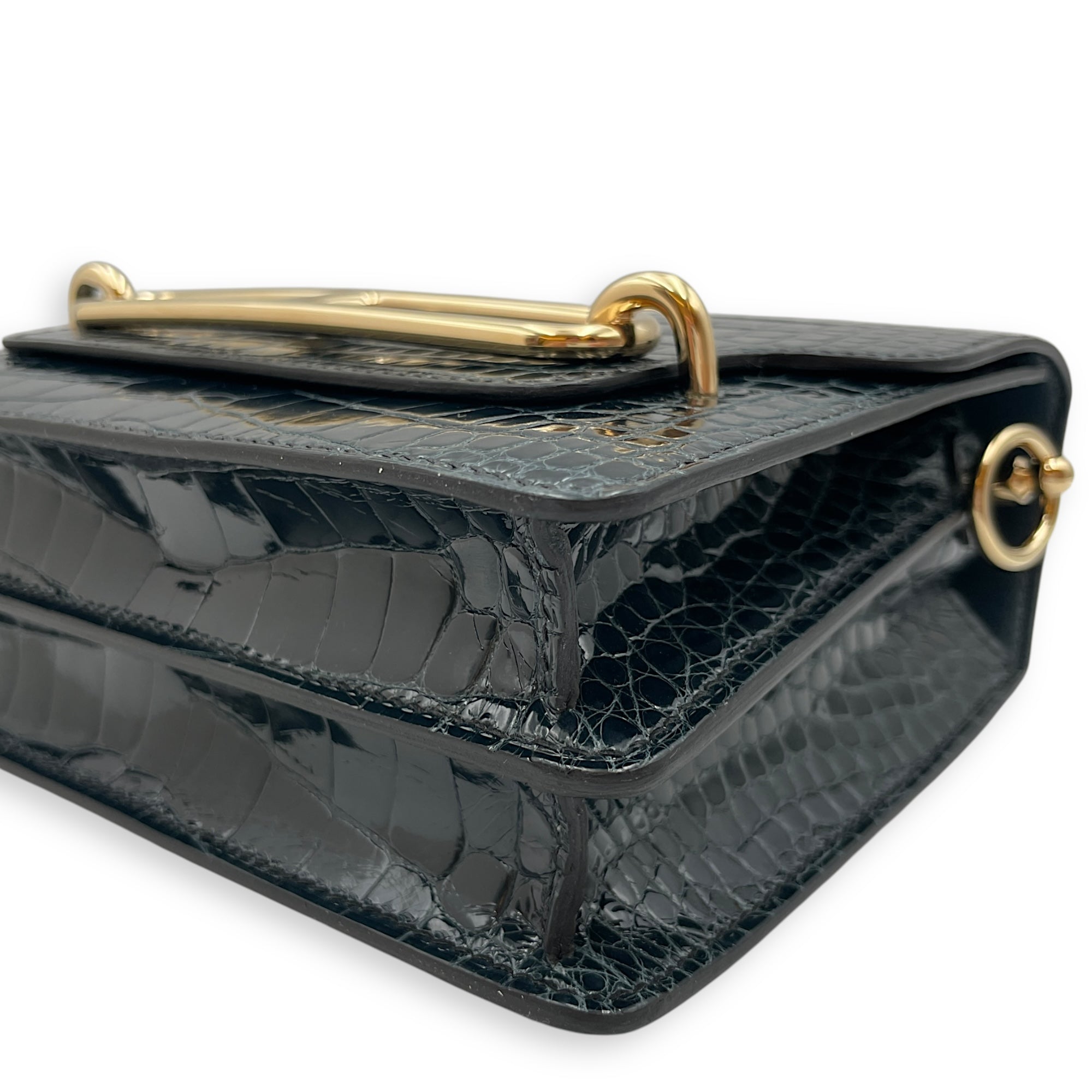 Be the first to review “Roulis Mini Vert Rousseau in Shiny Alligator, Permabrass hardware”