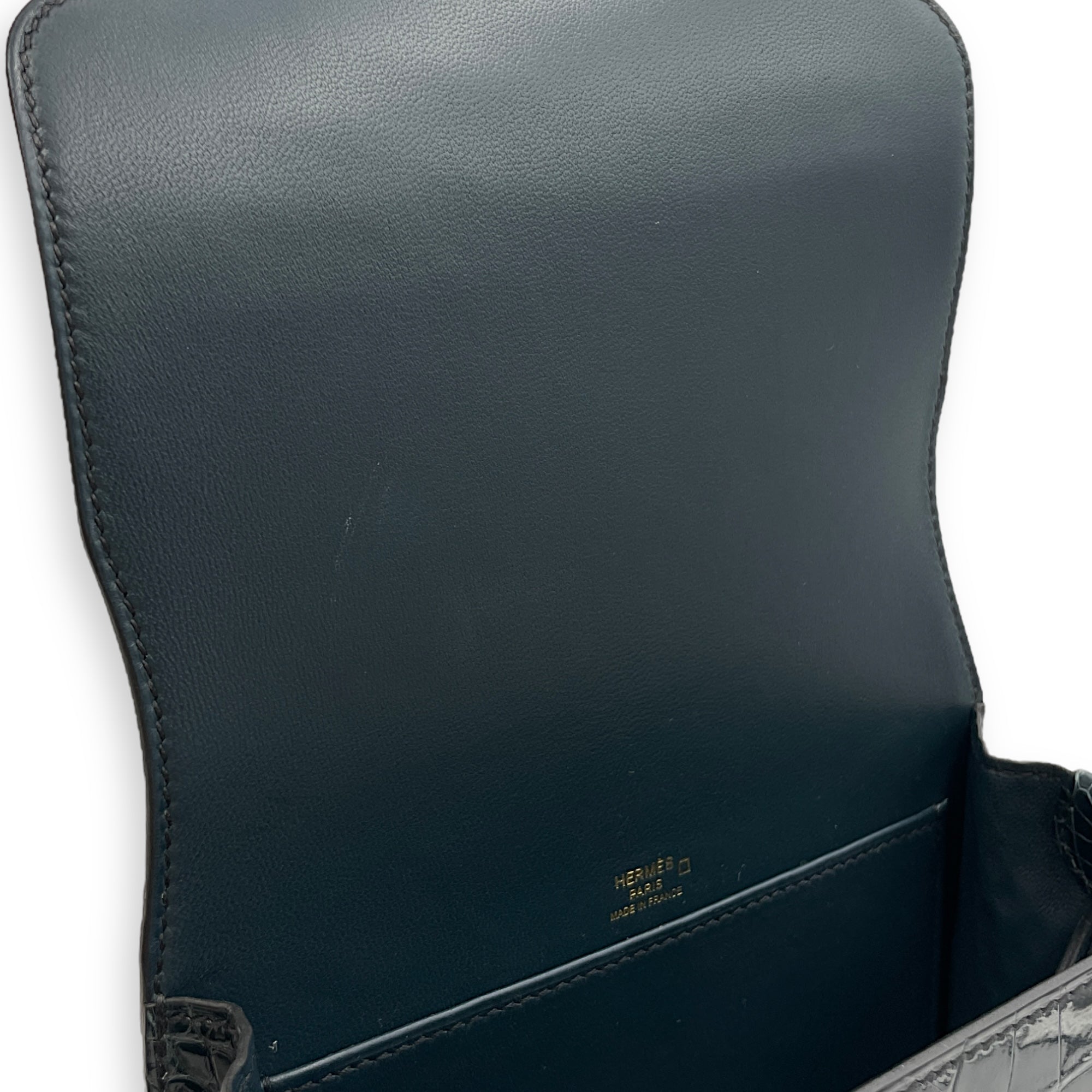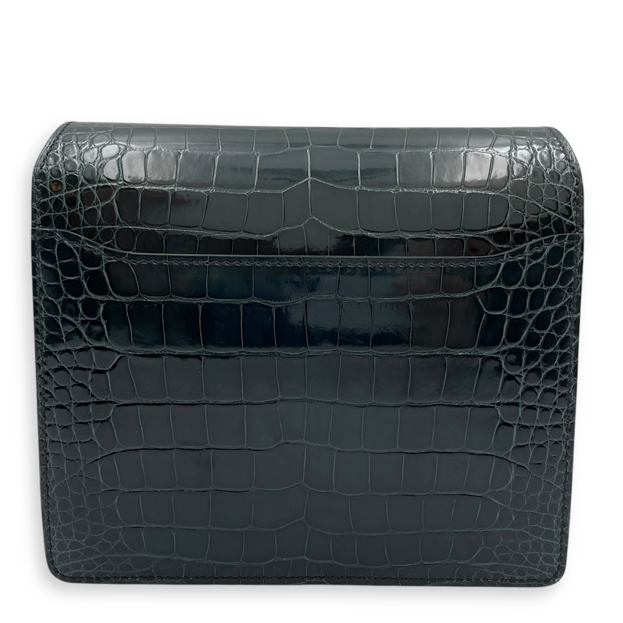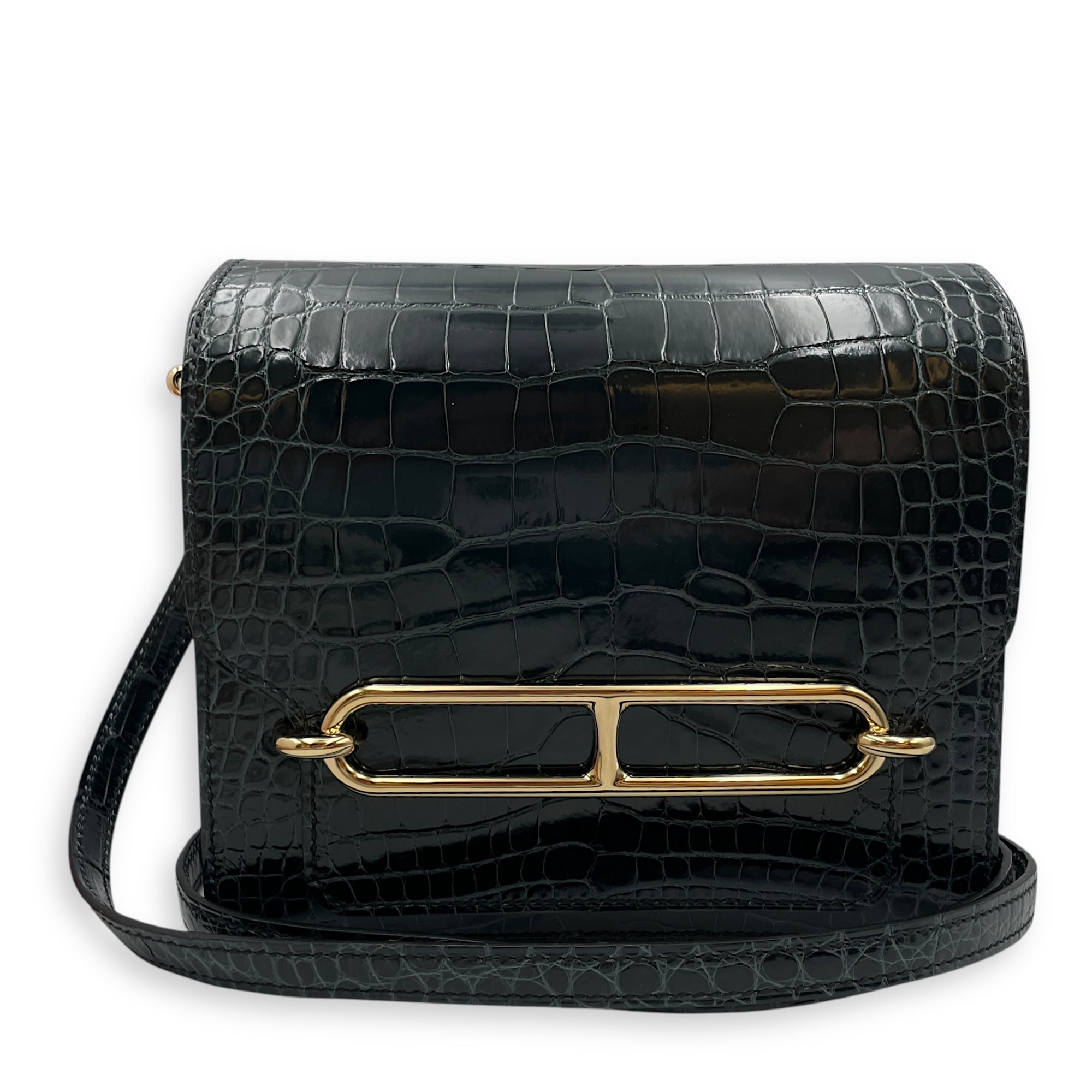 Be the first to review “Roulis Mini Vert Rousseau in Shiny Alligator, Permabrass hardware”
