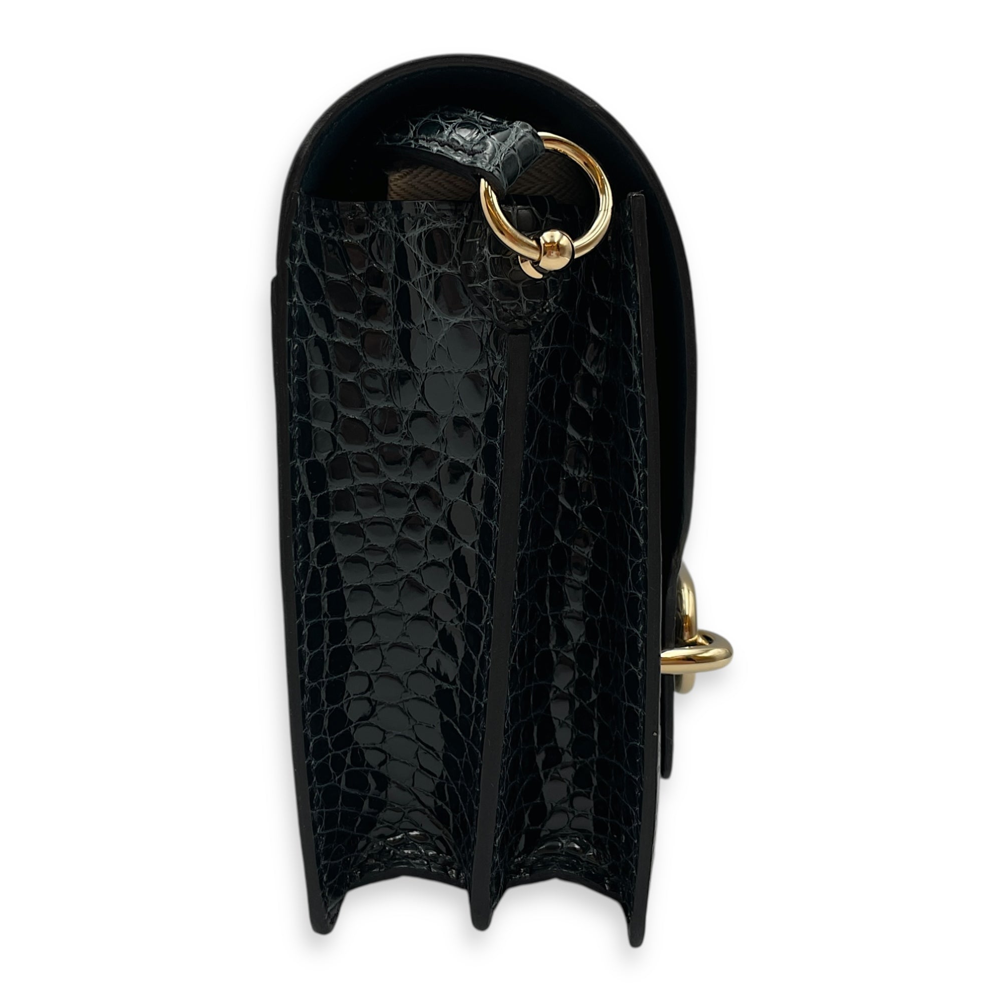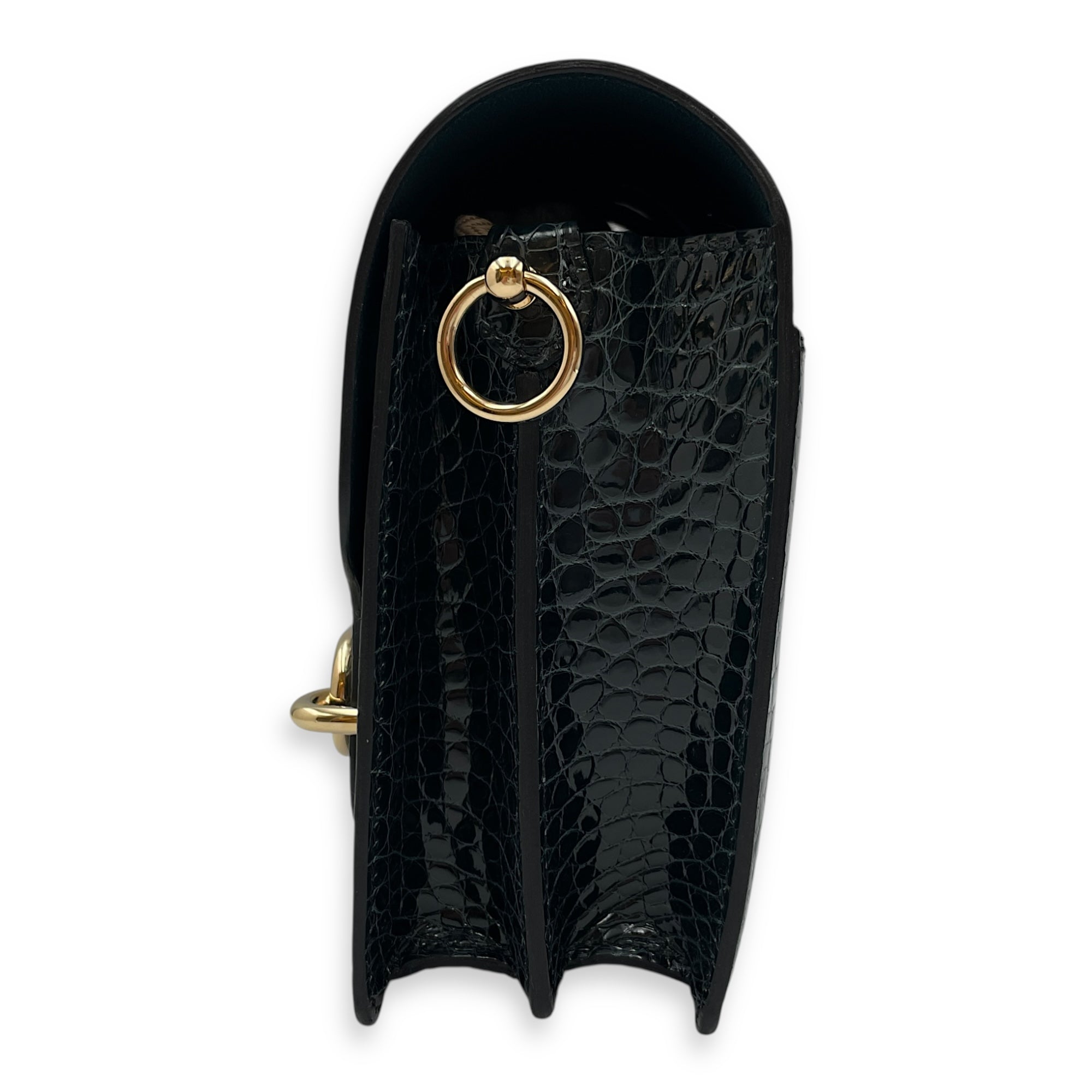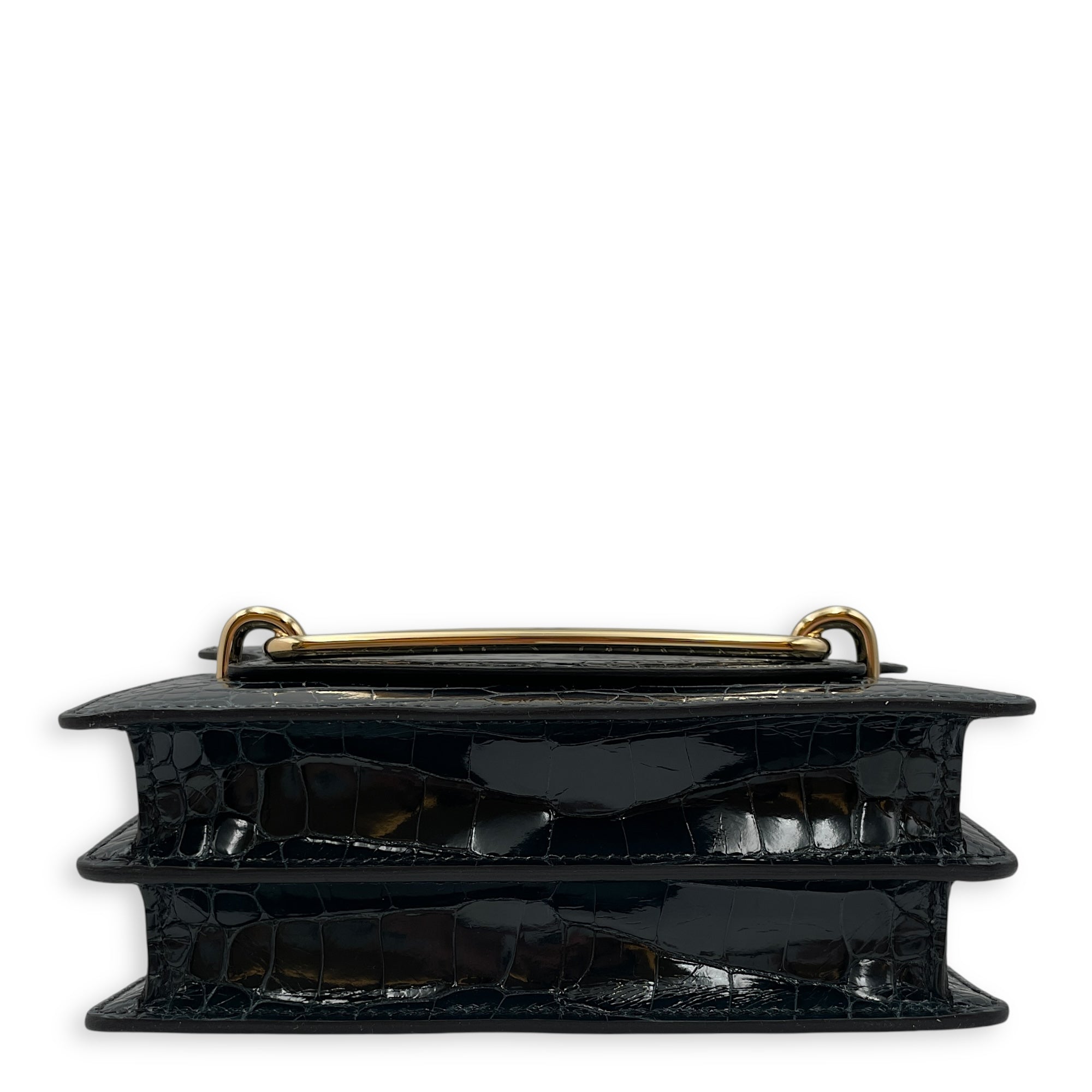 Roulis Mini Vert Rousseau in Shiny Alligator, Permabrass hardware