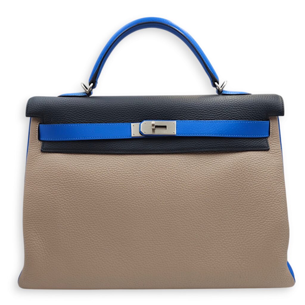Saddle Bag Blue Toile de Jouy Reverse Jacquard boasts an antique gold-finish metal ‘CD’ signature on each side. The style features a Saddle flap with a magnetic ‘D’ stirrup clasp and boasts. This bag has gold-tone metal and a short handle strap, roomy pockets inside, and a patch pocket on the back.