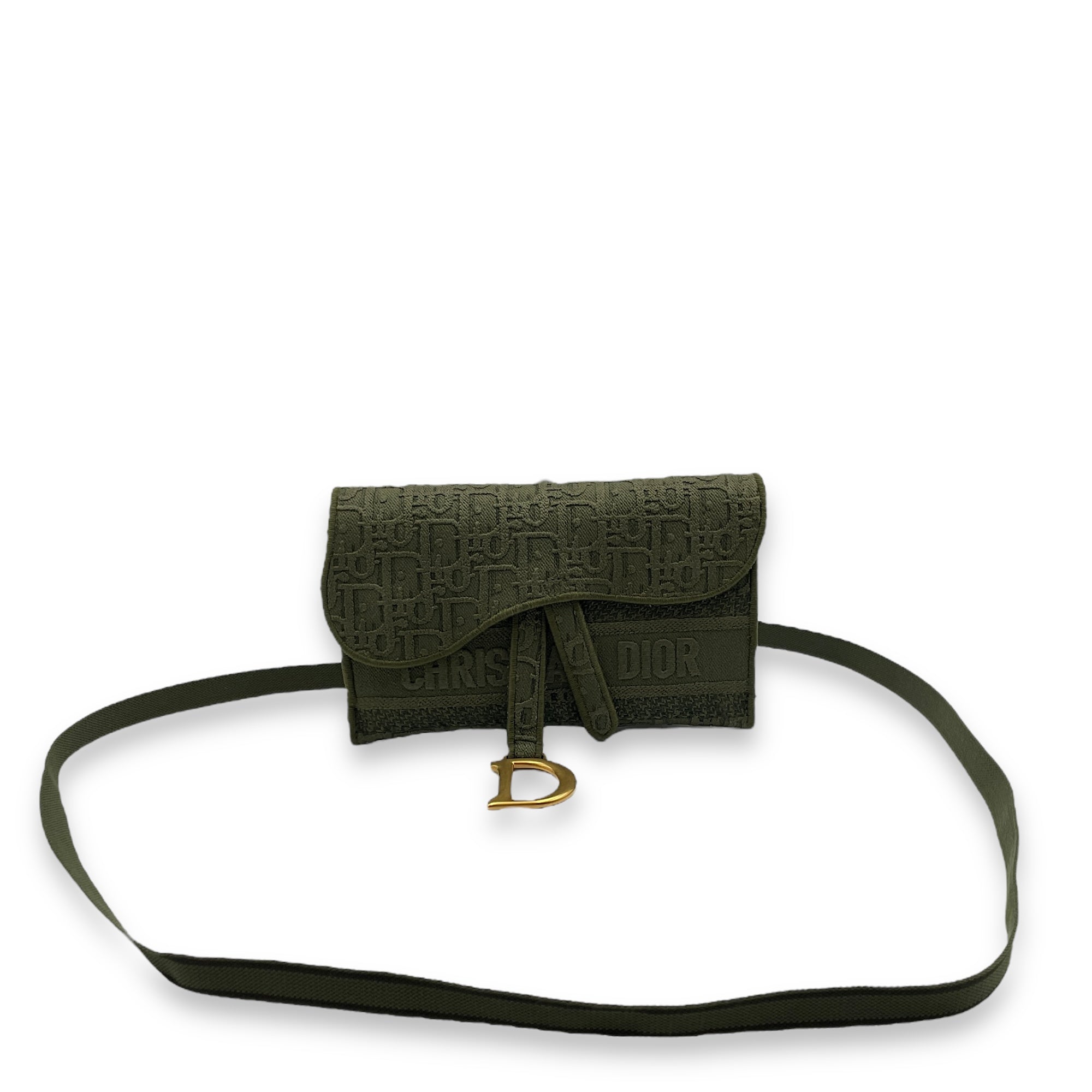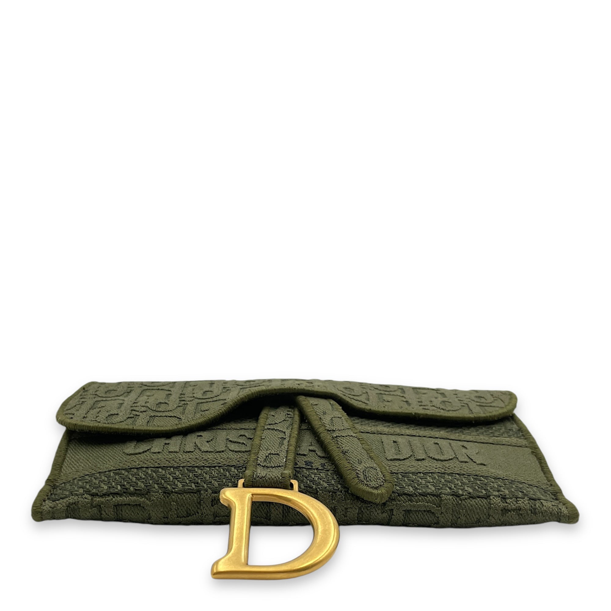 Saddle Green Crossbody Bag in Canvas, Gold hardware
