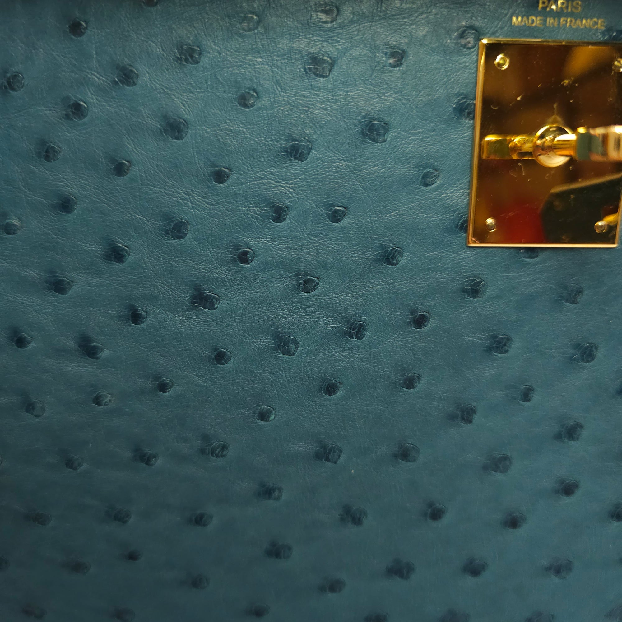 – Surface: Minor peeling of the ostrich. Chaffing. Indentations and markings near the handle