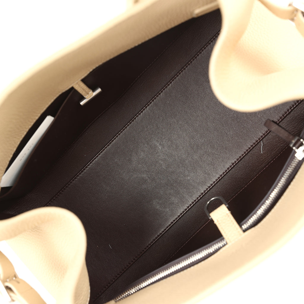 The Row Margaux Shoulder 12 Bag Boulder Calfskin Silver Hardware Shop for an authentic The Row Soft Margaux 12 Shoulder Bag is in Boulder calfskin leather with silver hardware in new and never worn condition at Madison Avenue Couture.