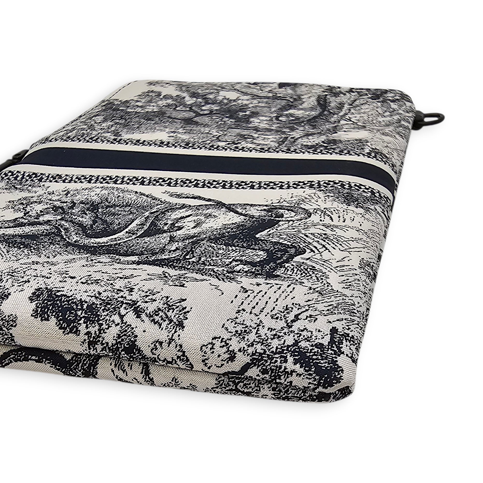 Be the first to review “Travel Multifunctional Blue Pouch in Toile de jouy technical fabric, Gunmetal hardware”