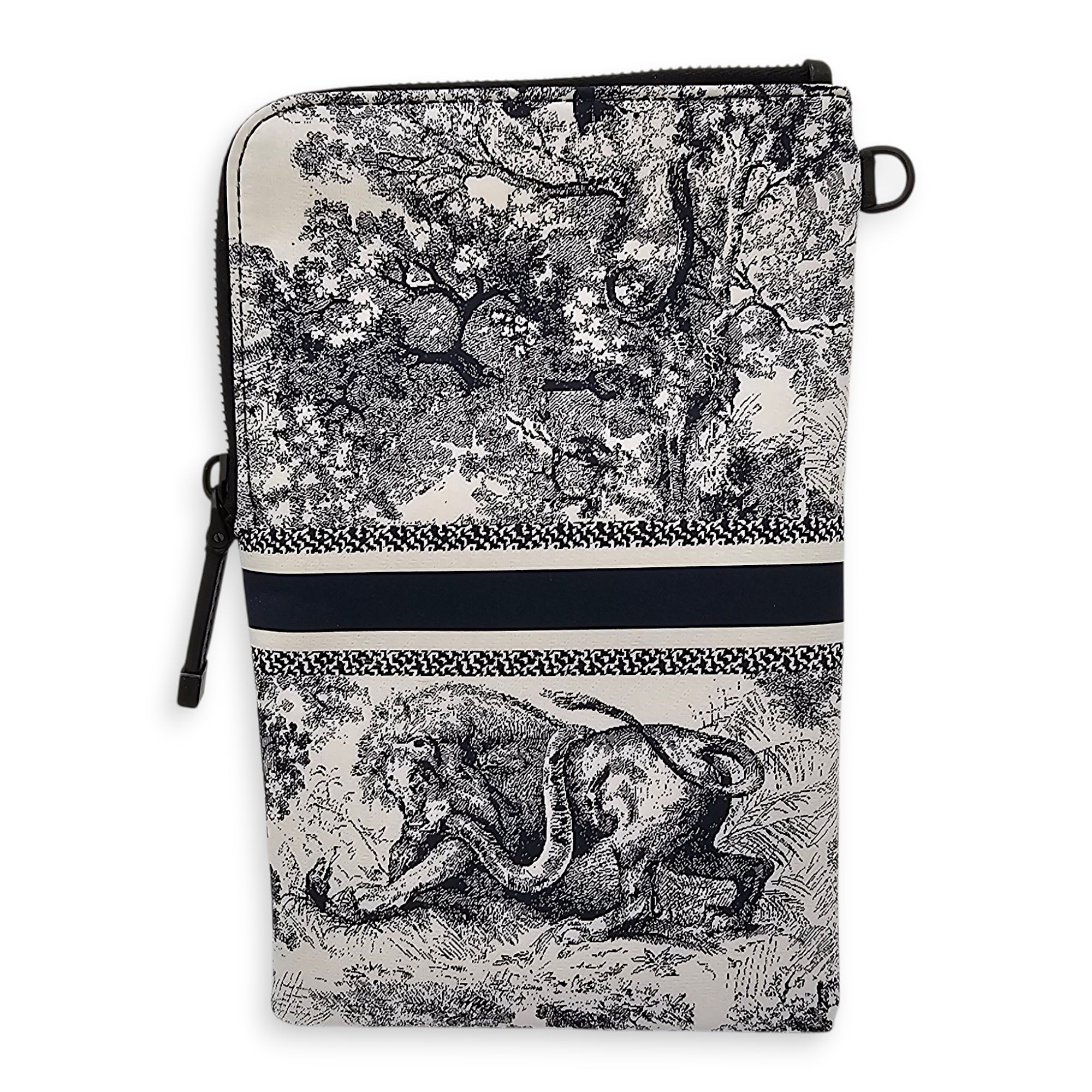 Travel Multifunctional Blue Pouch in Toile de jouy technical fabric, Gunmetal hardware