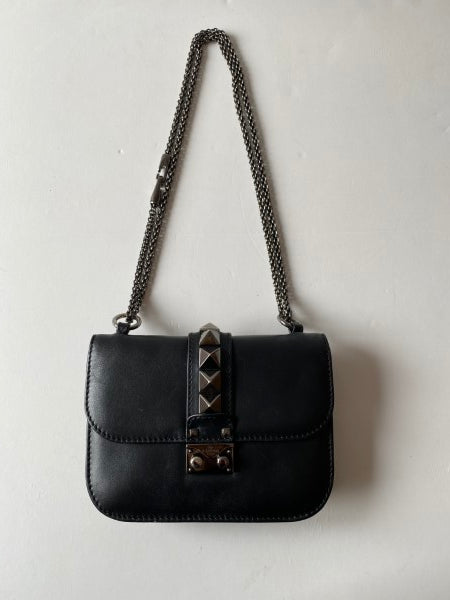 Valentino Black Rockstud Glam Lock Bag