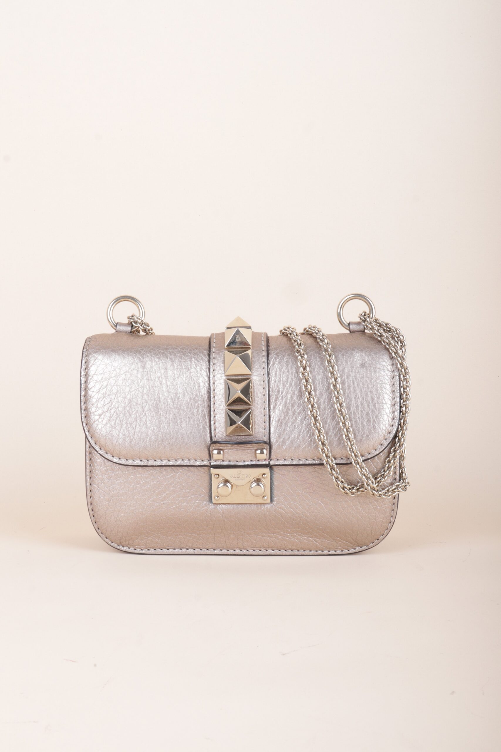 Valentino Metallic Gold Small Rockstud Glam Lock Shoulder Bag