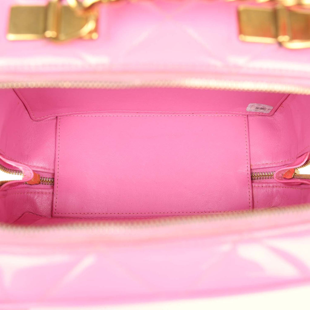 Vintage Chanel Lunchbox Vanity Bag Pink Patent Gold Hardware