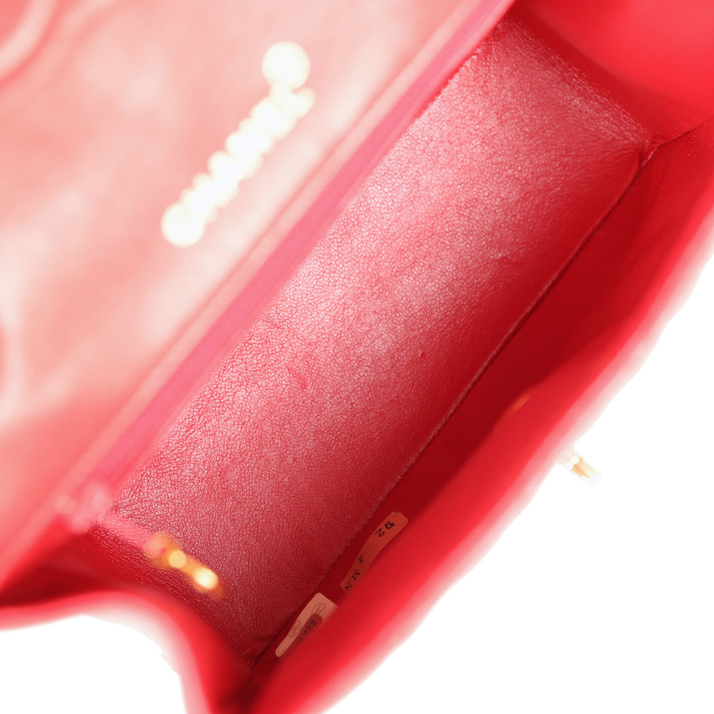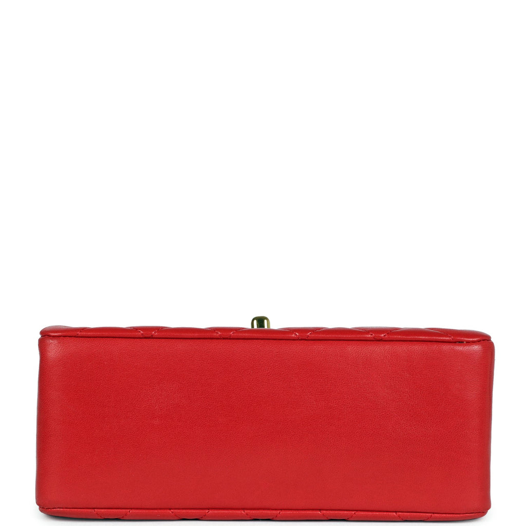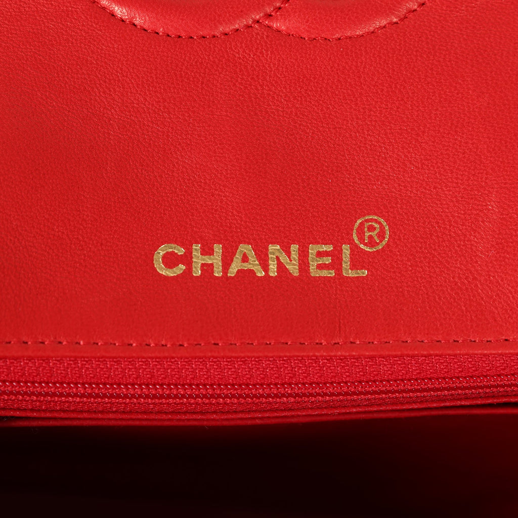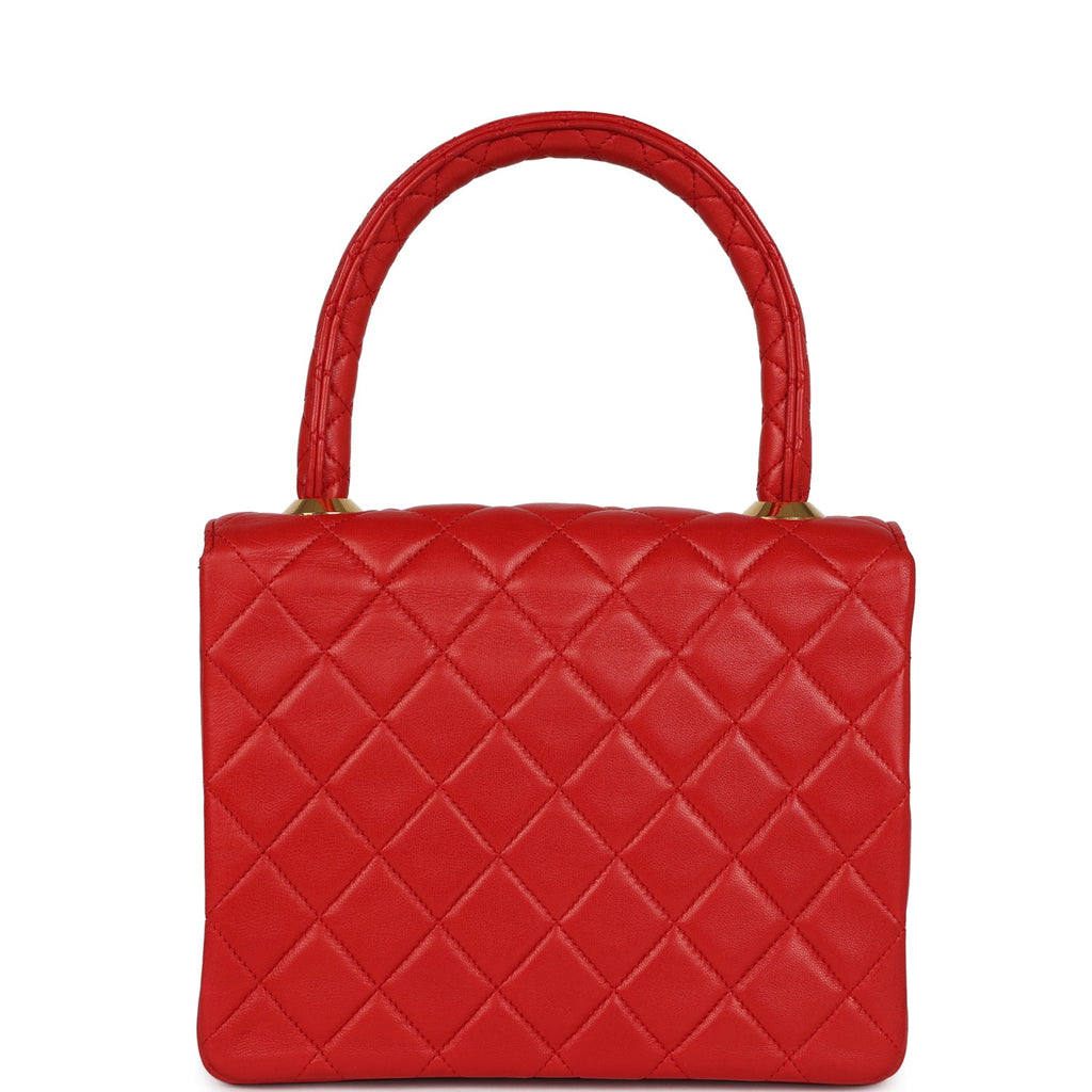 Vintage Chanel Top Handle Square Flap Red Lambskin Gold Hardware Shop for an authentic vintage Chanel Top Handle Flap in Red Lambskin with Gold Hardware in excellent condition at Madison Avenue Couture.