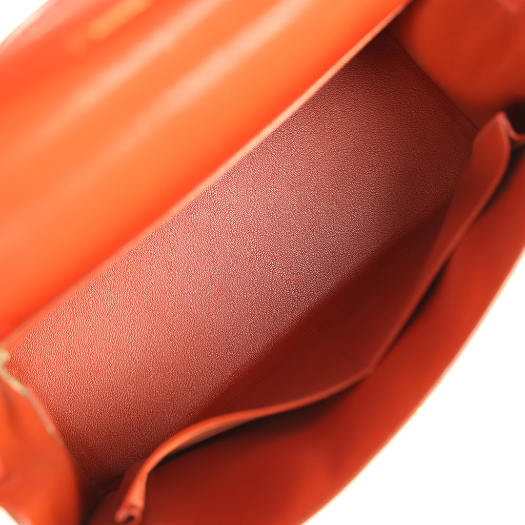 Vintage Hermes "Kimono" Kelly Sellier 32 Brique Box and Embroidered Silk Gold Hardware Shop for an authentic vintage Hermes "Kimono" Kelly Sellier 32 inBrique Box and Embroidered Silk with gold hardware in excellent to mint condition at Madison Avenue Couture.