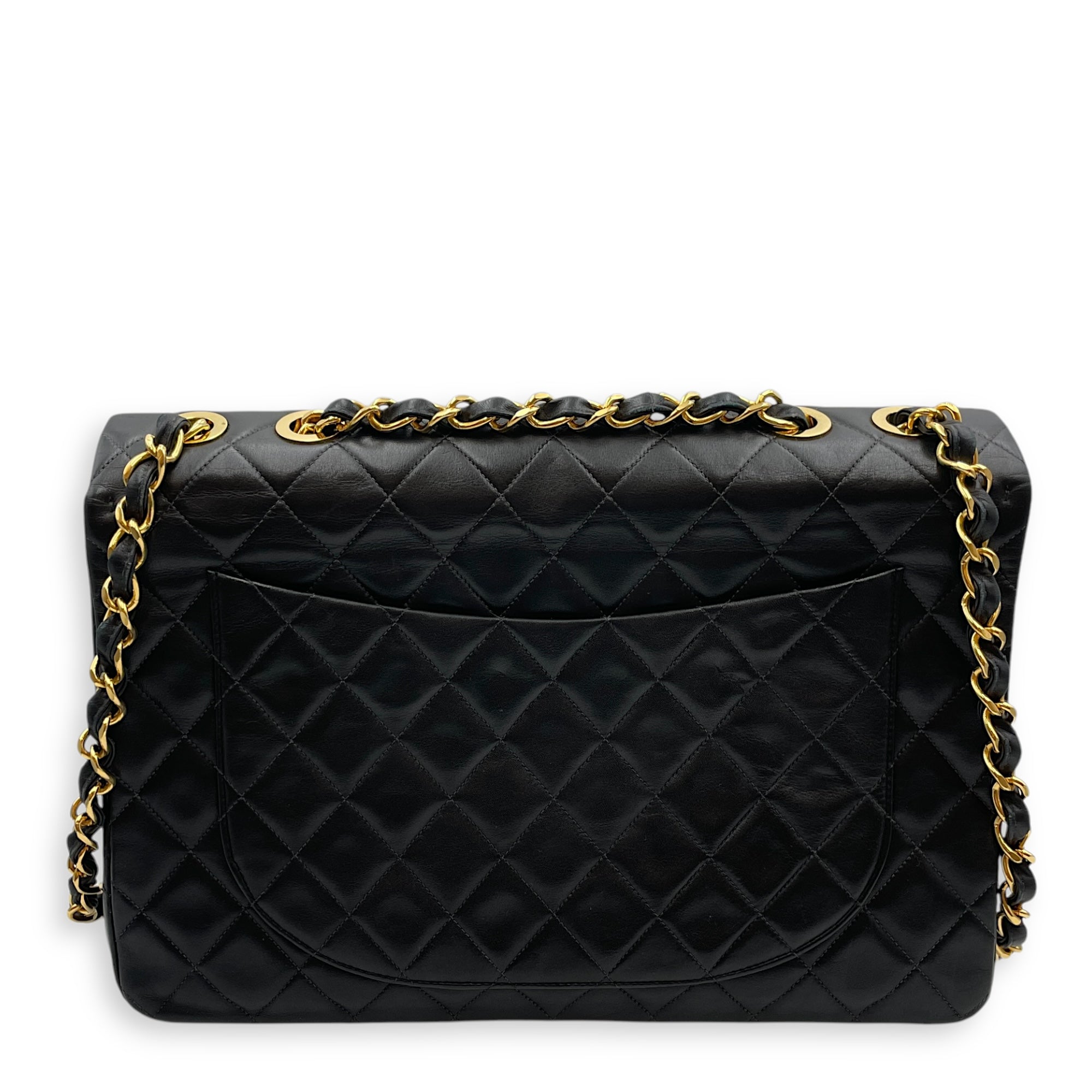 Vintage Maxl Black Flap Bag in Lambskin, Gold hardware