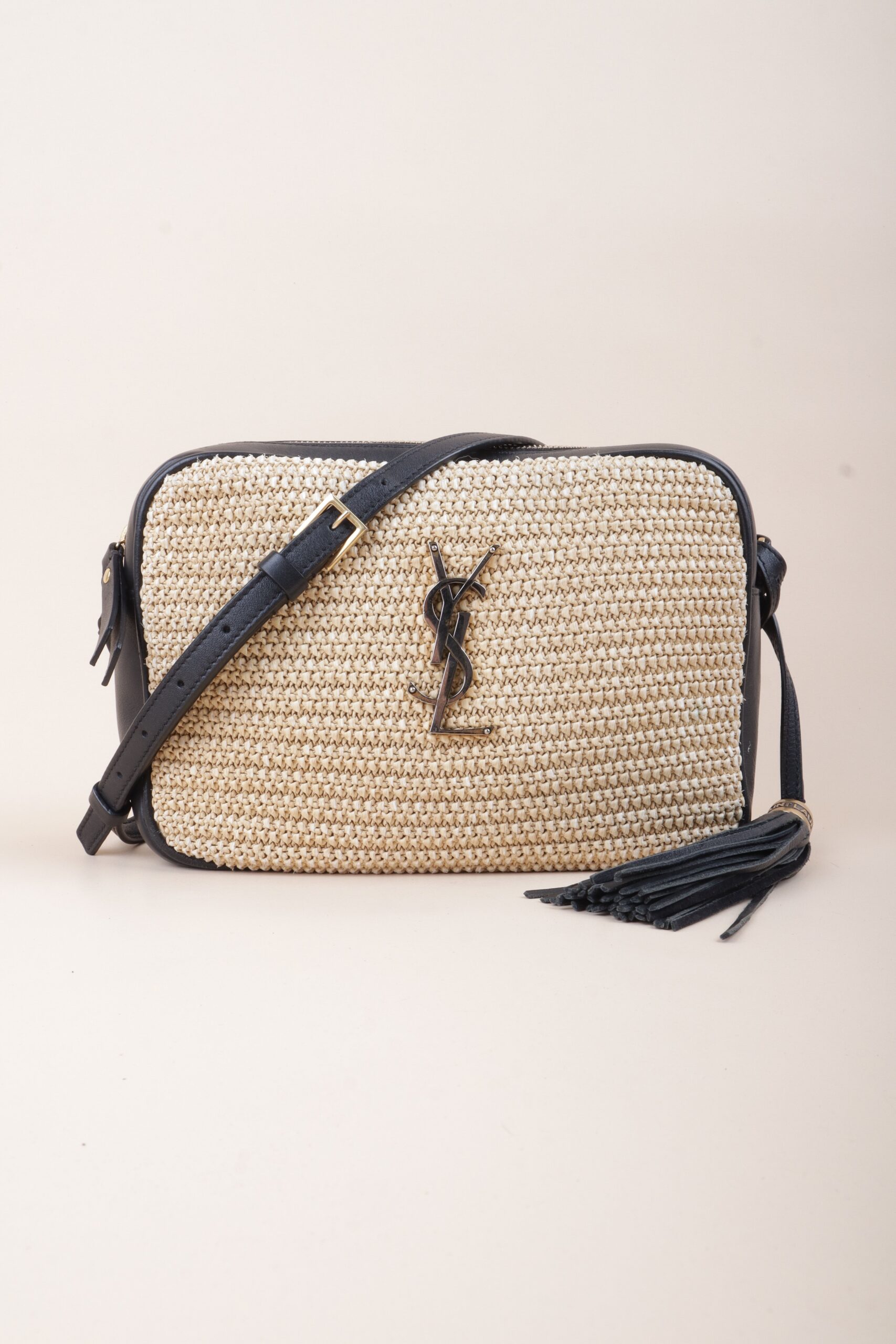 YSL Bicolor Raffia Lou Camera Bag with Charm