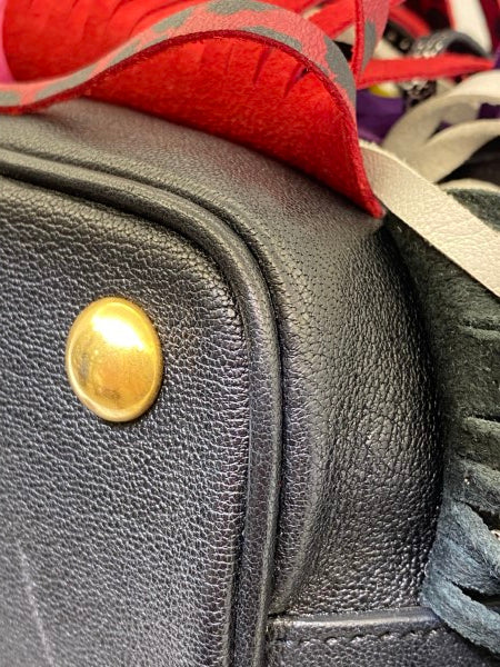 • Material: Black Calfskin Leather with Multicolor Fring Details