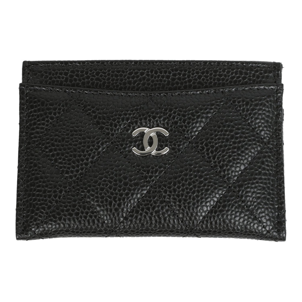 Chanel Classic Card Holder Wallet Black Caviar Silver Hardware